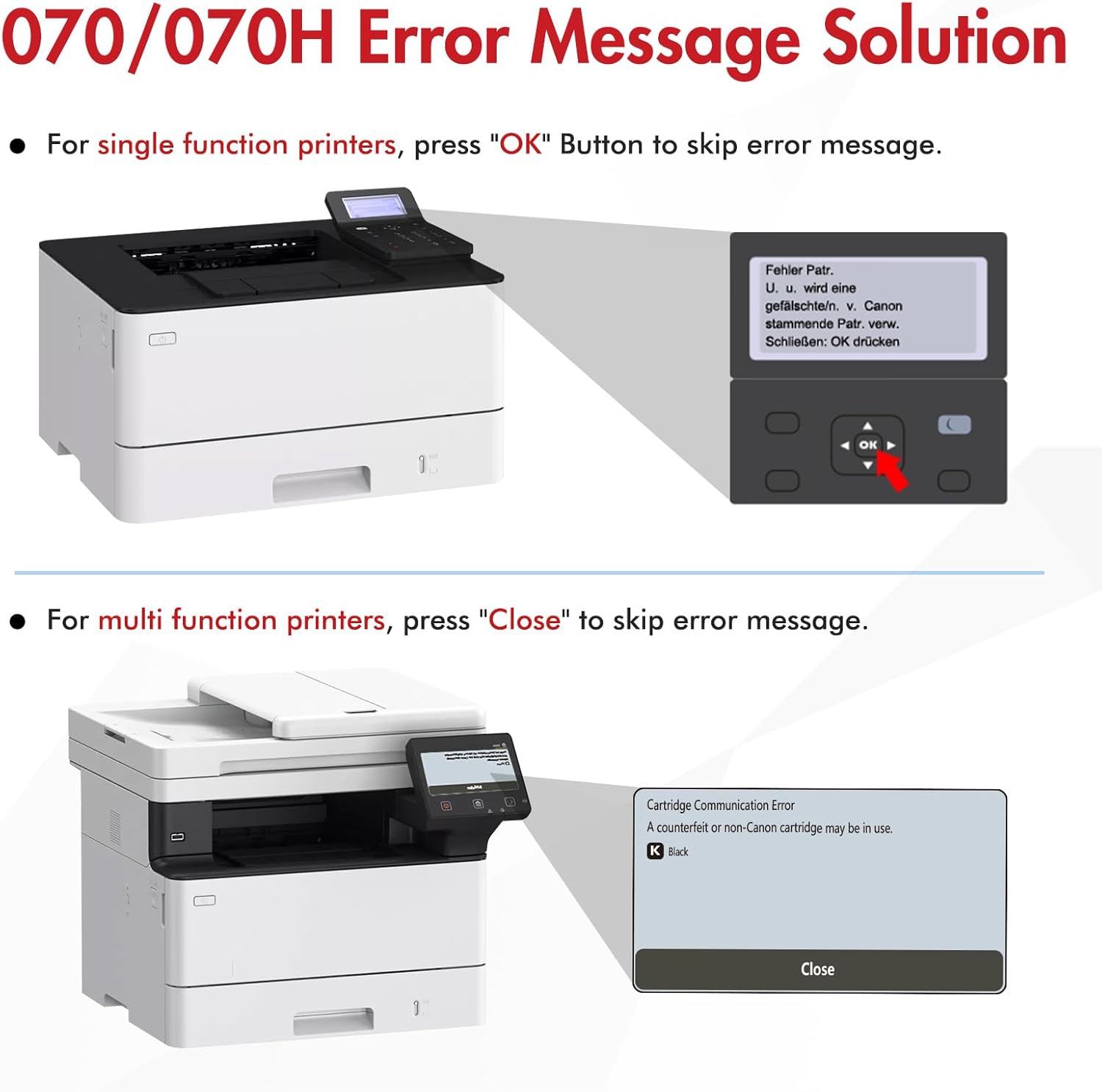 | Compatible Devices | Cartridge 070 for imageClass MF467dw MF465dw MF463dw MF462dw MF461dw LBP247dw LBP246dw LBP244dw LBP243dw LBP241dw |