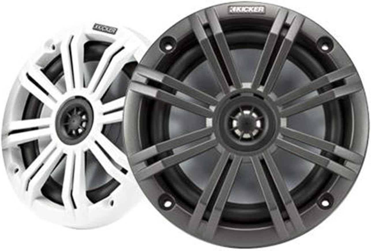 6.5" Speakers:Pair of Kicker 6.5 inch 195W Peak / 65W RMS 4-Ohm 2-Way Coaxial Marine SpeakersPower Handling Per Speaker: 195 Watts Peak / 65 Watts RMS Per SpeakerPower Handling Per Pair: 390 Watts Peak / 130 Watts RMS Per Pair2-Way DesignSantoprene SurroundsWoofer Size: 6.5 inchWoofer Composition TitaniumTweeter Size: 1/2 inchTweeter Dome Material: TitaniumImpedance: 4-OhmsSensitivity: 90dBFrequency Response: 35-21,000 HzCutout Dimensions: 5.12 inchTop-Mount Depth: 2.87 inchstainless steel mounting hardware includedwarranty: 1 year?impedance: 4 ohmsmounting depth: 2-3/8 inchsealed motor structure and locking terminal covers1/2 inch balanced dome titanium tweeterPolypropylene woofer with Santoprene rubber surroundSpeaker Grilles:White GrillesDurably ConstructedCompatible with Kicker marine speakersSpeaker Wire:Marine Grade OFC (oxygen-free copper) constructionGauge: 1650 Ft Long