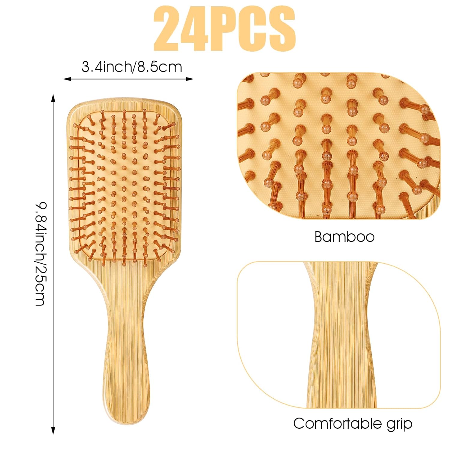 10 Pcs Bamboo Hair Brush, Bulk Round-tipped Bamboo Bristles Detangling Brush Paddle Brush Lightweight Massage Bamboo Bristles Anti Static for Women Men and Children, Stimulates Scalp for Hair GrowthSpecification:Category: Hair BrushColor: Wood colorMaterial: Bamboo, PlasticFunction: Durable, comfortable grip, air bag hair combProduct Size: 9.84 × 3.4 × 1.6 inche