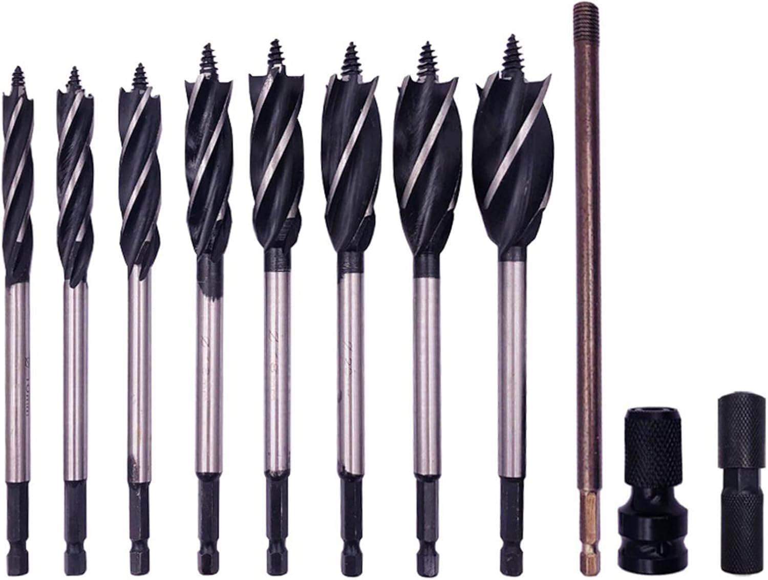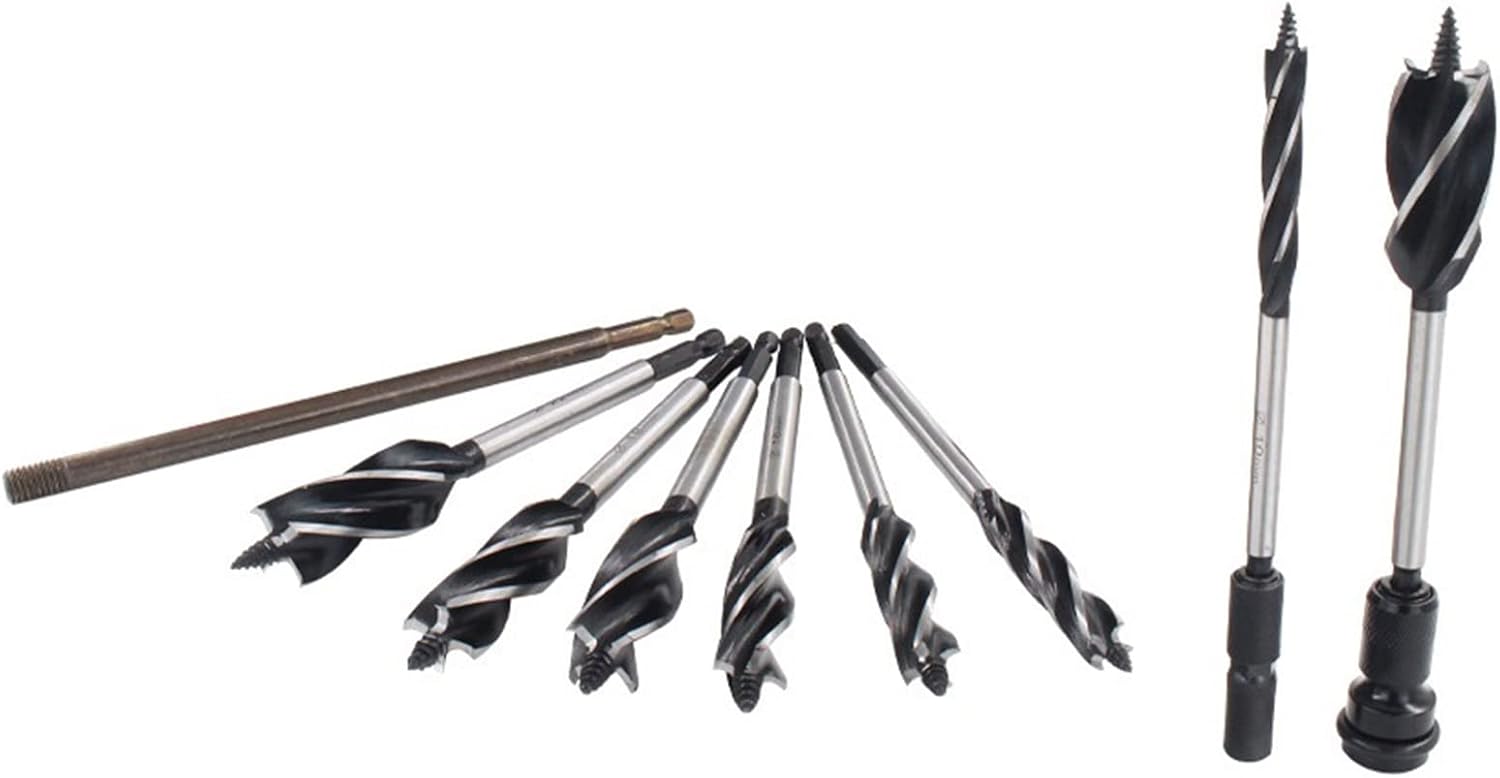 11 Pcs Flute Auger Bit Set 10-25mm Used In Hand Drills Electric Drills Drill For Making Neat Holes High HardnessFeatures:and Full grinding process, the is more smooth, more smooth processed products less burr alloy fully heat treated, hardened and tempered for longer useful life.The is an improvement over and auger bits. 4 ground cutting edges and 4 flutes engineered to optimize easy for chip removing.With self feeding auger point, easy cutting of accurate diameter holes.Woodworking drill bits for ideal for making neat and holes into both hard wood and soft wood, Come with grooved shank, can be used in hand drills electric drills drill.Specifications:Alloy Color Black Cutting Diameter:10mm 12mm 14mm 16mm 18mm 20mm 22mm 25mmHandle Diameter: 6.35 (mm)Size:Mixed SizePackage Includes:11 Pieces Flute Auger Bits/SetNote:Due to the light and screen setting difference, the item's color may be slightly different from the pictures. Please allow slight dimension difference due to different manual measurement.