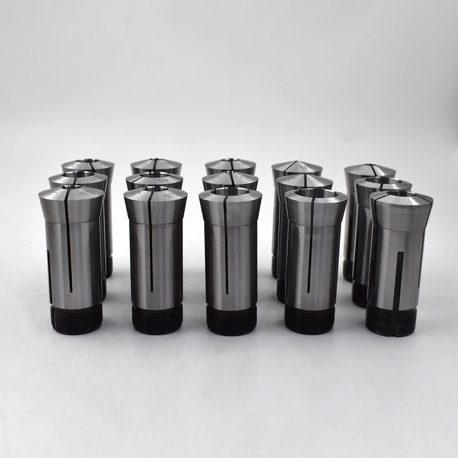 • 15PCS 5C Collet Set: 1/8, 3/16, 1/4, 5/16, 3/8, 7/16, 1/2, 9/16, 5/8, 11/16, 3/4, 13/16, 7/8, 15/16, 1.