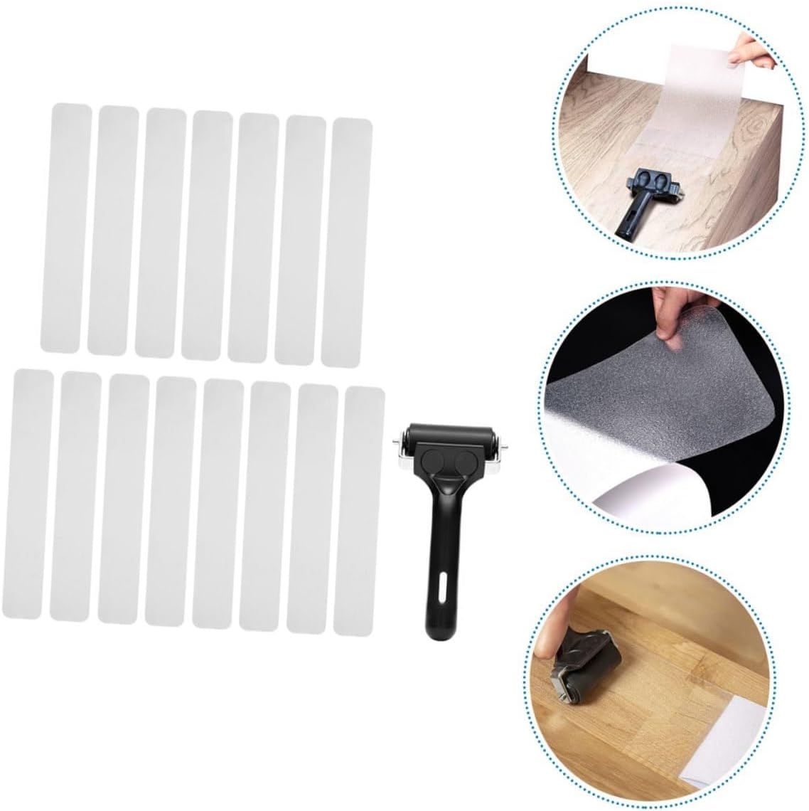 Package List 15 x anti-slip strips 1 x roller Features -Size: 10.16X60.90X0.20cm/3.99X23.93X0.08in -Material: PEVA -Product Info:Anti-slip tape -Color:Transparent - Gravel texture surface design, increasefriction, not easy to after application Flooring Anti-slip Stickers. - Please make sure the surface is clean anddry before applying the strips for best results bathtub anti tape. - Can withstand up to 80 Celsius degree term and 120 Celsius in short term bath strips for shower. - Adopt premium PEVA material for durableuse. - You can use it on bathroom floor, stair,kitchen floor, and etc adhesive shower treads.Goods InformationBathtub Anti-slip Tape Really practical and useful, just cleaningthe floor and stick it.anti skid treads tape Do you want a kind of bathroom kitchenanti-slip adhesive sticker? Do you want to keep and elder in bathroomand kitchen? This can be