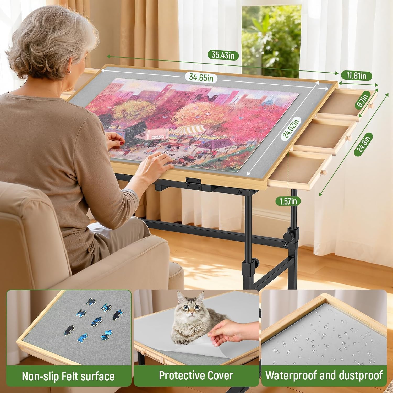 | Included Components | 1 Puzzle Board, 2 Supporting Frames, 4 Wheels, 1 Protective Cover, 2 Cross Bars, 6 Drawers, 1 User Manual |
