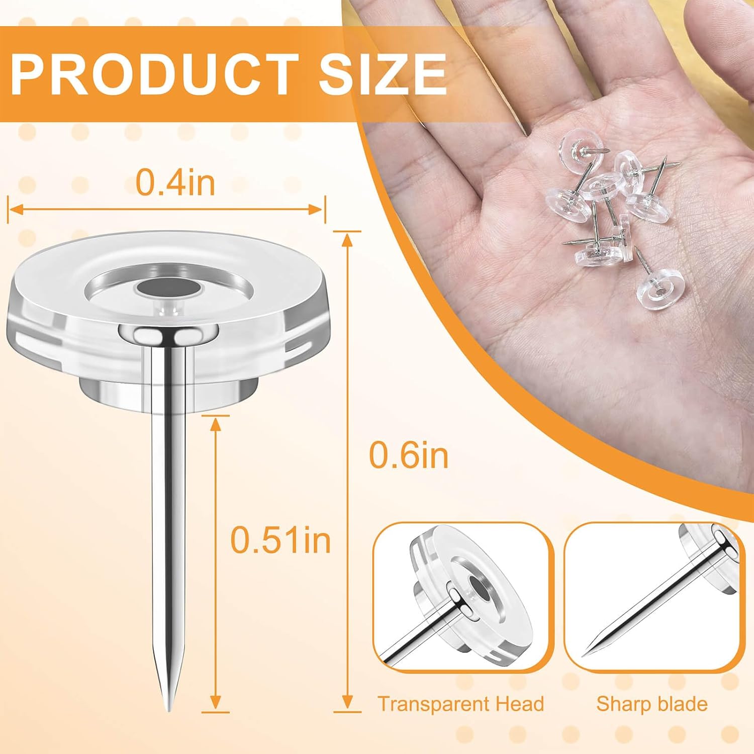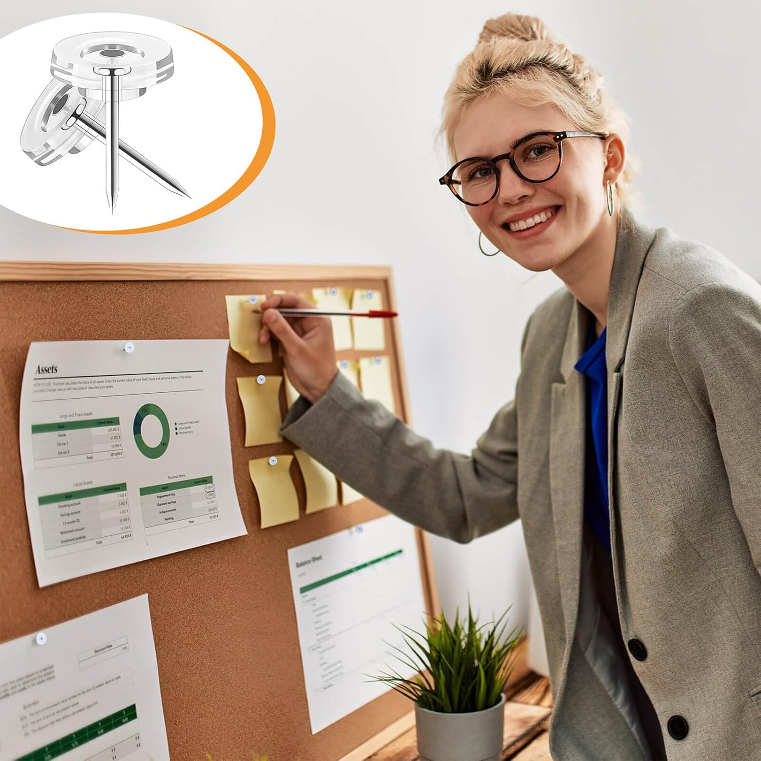 150Pcs Clear Push Pins Tacks, Thumb Tacks, Reusable Flat Head Thumbtacks for Bulletin Board, Maps, Posters, Wall Hanging, Craft Projects