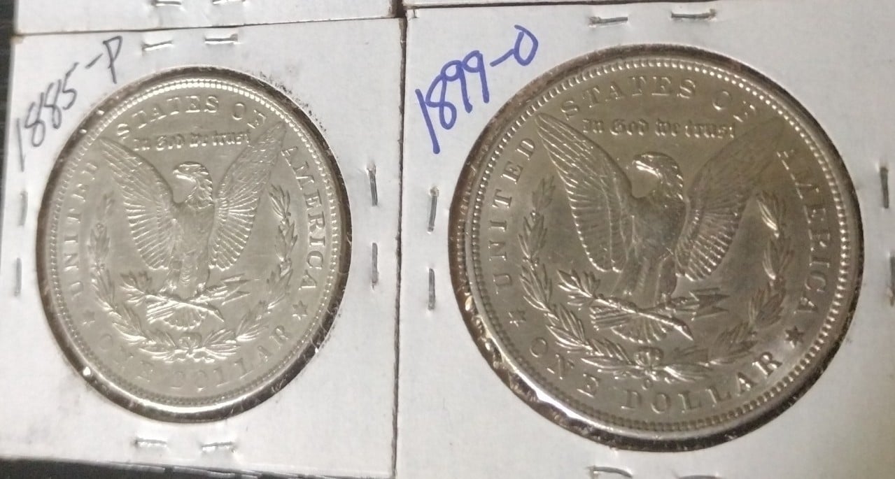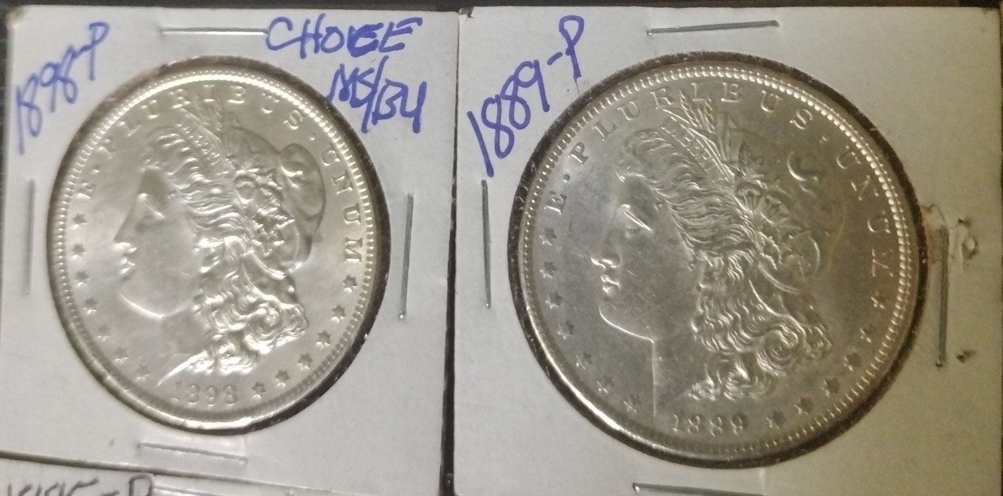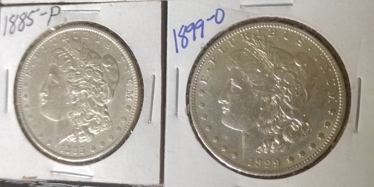 2) 1885-P Morgan Silver Dollar; Choice BU Semi Key Date, Full Feathering.