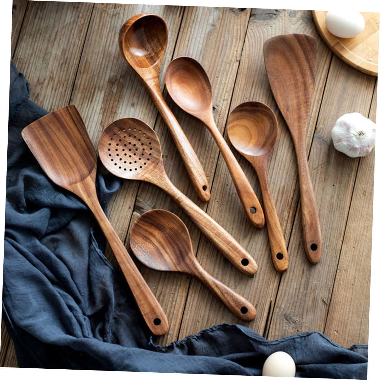 Package Include 1 x cooking spatula 1 x frying spatula 1 x colander spoon 1 x large soup spoon 1 x small soup spoon 1 x mixing spoon 1 x rice spoon Characteristics - Size: 26.00X7.00X2.00cm/10.22X2.75X0.79in(small soup spoon) wood utensils for cooking - Size: 28.00X8.50X2.00cm/11.00X3.34X0.79in(mixing spoon) kitchen spoons for cooking -Color:Assorted Color Short Handle Tea Spoons - Size: 33.50X8.50X1.00cm/13.17X3.34X0.39in(cooking spatula) practical tea scoops -Material:Wood wood soup spoons - Size: 31.50X7.50X1.00cm/12.38X2.95X0.39in(rice spoon) Household Tea Scoops - Size: 23.50X7.00X1.00cm/9.24X2.75X0.39in(colander spoon) wood utensils - Size: 18.00X7.50X1.00cm/7.07X2.95X0.39in(frying spatula) grain spoon - Size: 25.50X6.50X2.00cm/10.02X2.55X0.79in(large soup spoon) sugar spoon -The fine craftsmanship a comfortable grip and prevents damage to your cookware spoon. -This is a complete kitchen utensil kit, and you can present it to friends who love cooking or kitchen duties, they will love this elegant and practical kitchen accessory multifunctional kitchen spoon.Goods Informationconvenient salt scoops Made from natural wood, it is not only safe but also adds a touch of elegance to your cooking experience.grain spoon This set includes a variety of kitchen utensils, allowing you to meet all your cooking needs.wood cooking utensils The wood spoon set is a versatile and essential tool for any kitchen.multifunction spoon The fine craftsmanship a comfortable grip and prevents any damage to your cookware