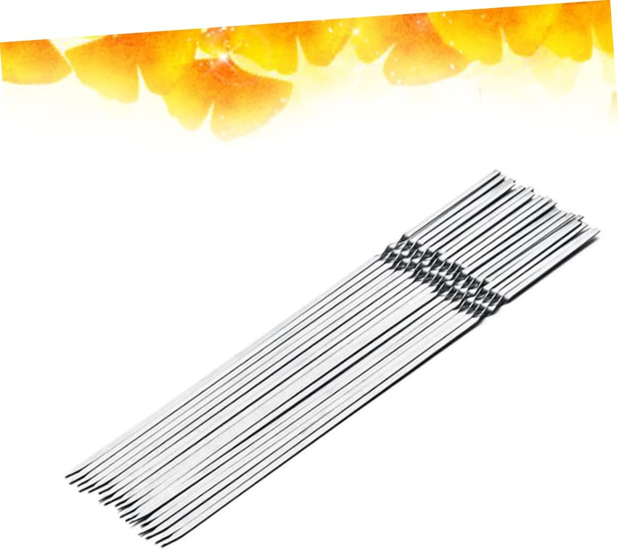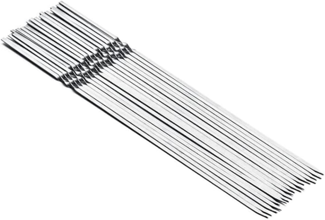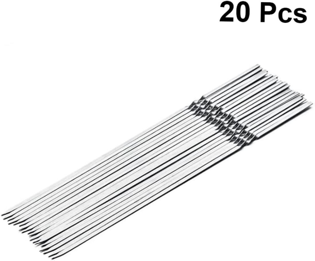 Package List 20 x barbecue sticks Characteristics -Material: Stainless Steel barbecue stick. -Size: Approx 35x1x1cm stainless steel barbecue bar. -Color: Silver. - 35cm long size design prevents people from getting burned easily when grilling stainless steel barbecue stick. - Suitable for outdoor BBQ party, barbecue restaurant, camping barbecue skewer. - Unique shape design prevent your food from spinning/rolling and it makes getting an even cook easier reusable BBQ skewer. - Adopting stainless steel design for reused. - Made from food grade stainless steel, contain no harmful chemicals that leach into your food, it is rust- , heavy duty.Goods Descriptionreusable BBQ skewer Included 20pcs barbecue special sticks, and all of these sticks are made of stainless steel material.stainless steel barbecue bar Suitable for BBQ lovers and home BBQ party holders.stainless steel barbecue stick No worry about burned stick destroy the meat's taste anymore.barbecue skewer Special shape and wide blades makes your cooking