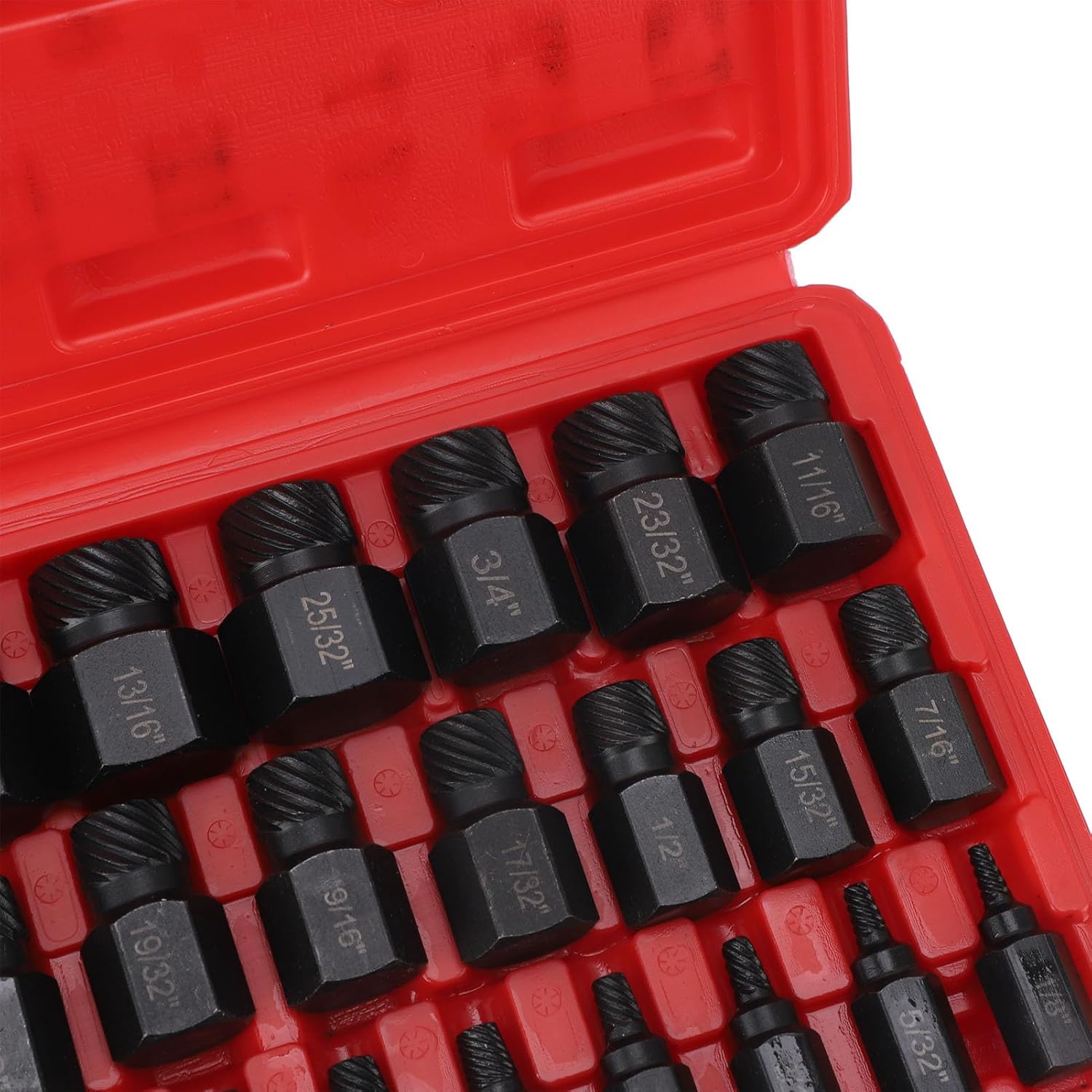 [Screw Extractor Efficiency]This 25 piece screw extractor set is perfect for removing broken or stripped screws and bolts precisely. [ Material]Constructed from 40Cr alloy steel for high hardness and resistance, ensuring longevity and reliability in demanding tasks. [Deep Spiral Design]Features deep spiral texture to enhance grip, reducing the of breakage or slipping during use. [Versatile Compatibility]Hex shank design allows use with electric drills, ratchets, or wrenches for convenient operation across various mechanical tasks. [Widely Applicable]Ideal for automotive maintenance, pipeline processing, and general mechanical repairs, meeting diverse repair needs. Item Type: Screw Extractor Set Material: 40cr Alloy Structural Steel Product Specification: 25 Piece Set Application: Mechanical Maintenance Product Type: Disassembly Tools 25 x Hex Shank Screw Extractor 1 x Storage Box