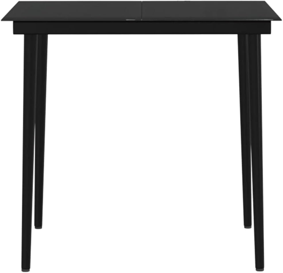 This stylish garden dining set is meant to be the focal point of your garden or patio! It is a great choice for al fresco dining or relaxing in the outdoor space!The powder-coated steel frames make the table and chairs sturdy and stable for daily outdoor use. Thanks to the water-resistant PE rattan, the chairs are easy to clean and hard-wearing. The ergonomically-designed shape and thickly-padded, removable cushions with foam filling provide the ultimate seating comfort. The low-maintenance polyester cushion covers can be easily removed and washed. Additionally, the smooth glass tabletop is easy to clean with a damp cloth and perfect for placing meals, drinks and other decorative items.Note: In order to extend the life of your outdoor furniture, we recommend you to clean it regularly and do not leave it outdoors without protection unnecessarily.Clean: Use a mild soap solution.Storing: If possible, store in a cool, dry place indoors. If the product is stored outdoors, protect it with a waterproof cover. Wipe and dry the excess water or snow from flat surfaces after a rain or snowfall. Allow sufficient air circulation to avoid moisture-related damage.Color: Brown and blackCushion color: Dark grayMaterial: Poly rattan, powder-coated steel, solid acacia wood with an oiled finish, glassCushion cover material: 100% polyesterTable dimensions: 31.5" x 31.5" x 29.1" (L x W x H)Chair dimensions: 22" x 23.6" x 32.1" (W x D x H)Seat width: 16.1"Seat depth: 17.7"Seat height from the ground: 16.1"Armrest height from the ground: 24"Cushion thickness: 1.2"Assembly required: YesDelivery contains:1 x Table2 x Chair2 x Seat cushion