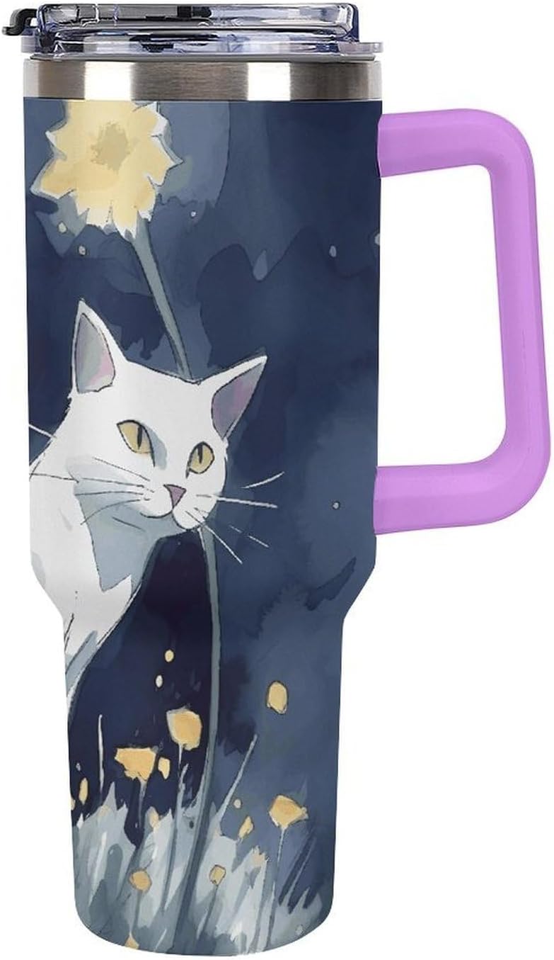 Are you still looking for a thermos that's just right for you?Consider our insulated coffee mug, made of high-quality 304 stainless steel. The interior is electropolished, preventing rust. Use it with peace of mind.This large-capacity insulated mug features a revolutionary T-shaped design, boasting a stylish and slim profile that easily fits into any standard car cup holder, significantly increasing its capacity. Enjoy your drinks anytime, anywhere without worrying about rehydration and reducing the frequency of refills.Our White Cat water bottles are suitable for a variety of occasions, such as parties, travel, gatherings, the beach, the office, and home. They also make wonderful gifts for family and women on holidays like Valentine's Day and Thanksgiving.