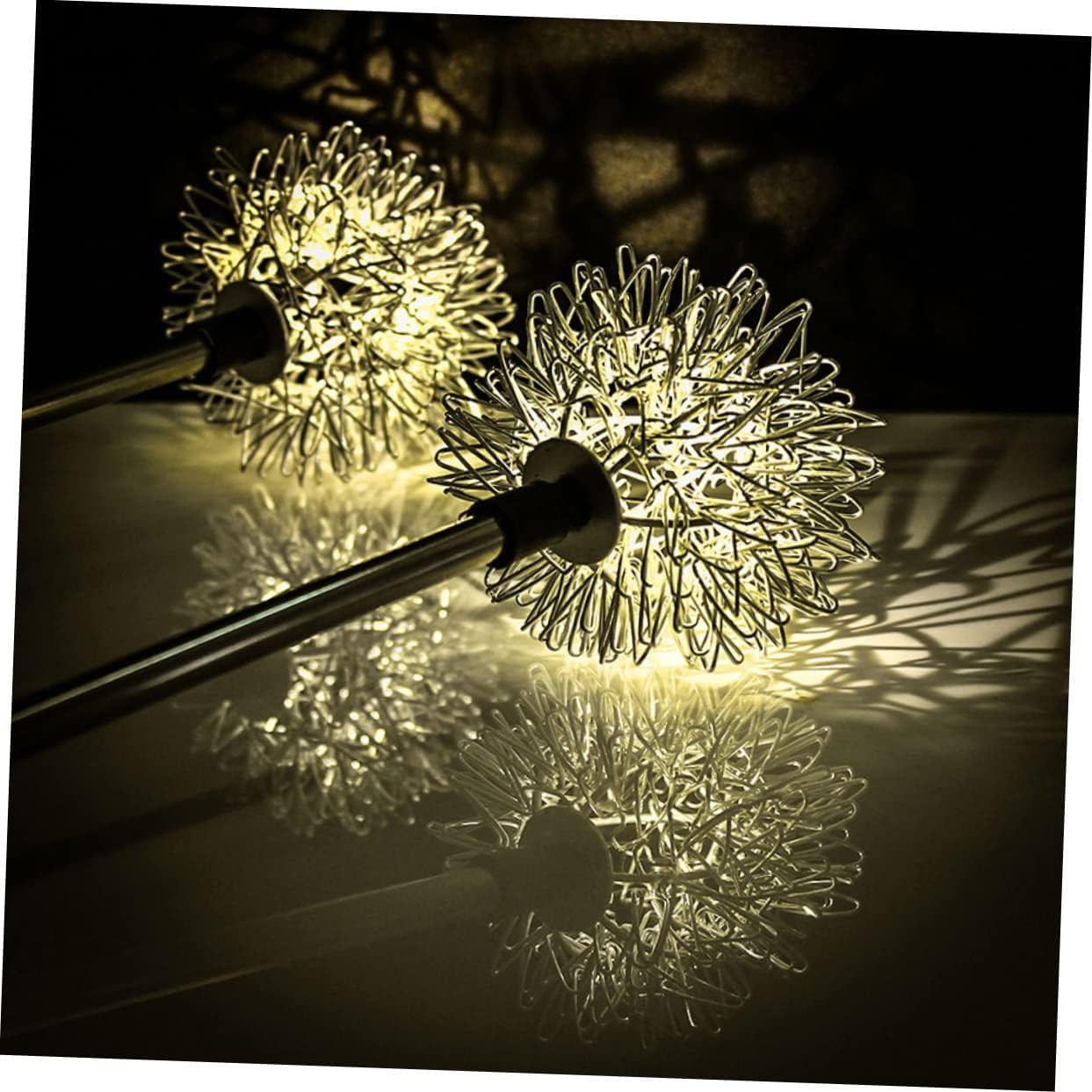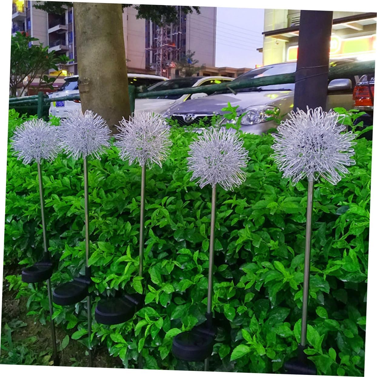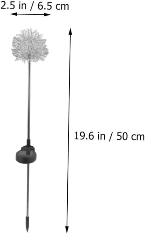 Package List 4 x decoration lights Features - Lifespan: 10000H courtyard solar light - Battery: 1.2V/1PC 600mAh AA - rechargeable battery LED Solar Lamp - Easy to install: no complicated installation procedures and no wiring required outdoor yard lights. - Light source: 2V 80mA solar lights outdoor garden - Voltage: 2V Decorative Light - Rated power: 0.5W Lawn Lamp Adornment - Material: Stainless steel, PP, ABS Garden Solar Light - Size: About 50.00X6.50X6.50cm/19.65X2.55X2.55inch Lawn Lamp - Waterproof rating: IP44 courtyard decorative lights - Working time: 4-6 hours under standard sunshine, 6-10 hours of illumination gardening decoration - Quality material makes the light durable and , safe to use Outdoor Garden Lamp. - The lamp is designed to add a warm and charming atmosphere throughout the night LED Lawn Lamp. - LED Solar Light - Creative and unique look make it more attractive, and it is practical in use courtyard dandelion lamps. - Special design makes the ground lamp a great decoration for park, garden, etc Outdoor Landscape Lamp.Goods DescriptionOutdoor Landscape Lamp Solar-powered, perfect for garden lighting, decorating your lawn, patio, garden and all other outdoor places.LED Solar will bring beautiful lighting to create a wonderful and relaxed atmosphere.Ground Insert Light Made of stainless steel, PP and ABS materials of , durable and have longer service life