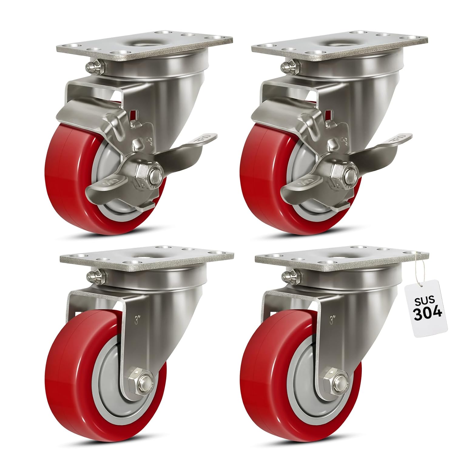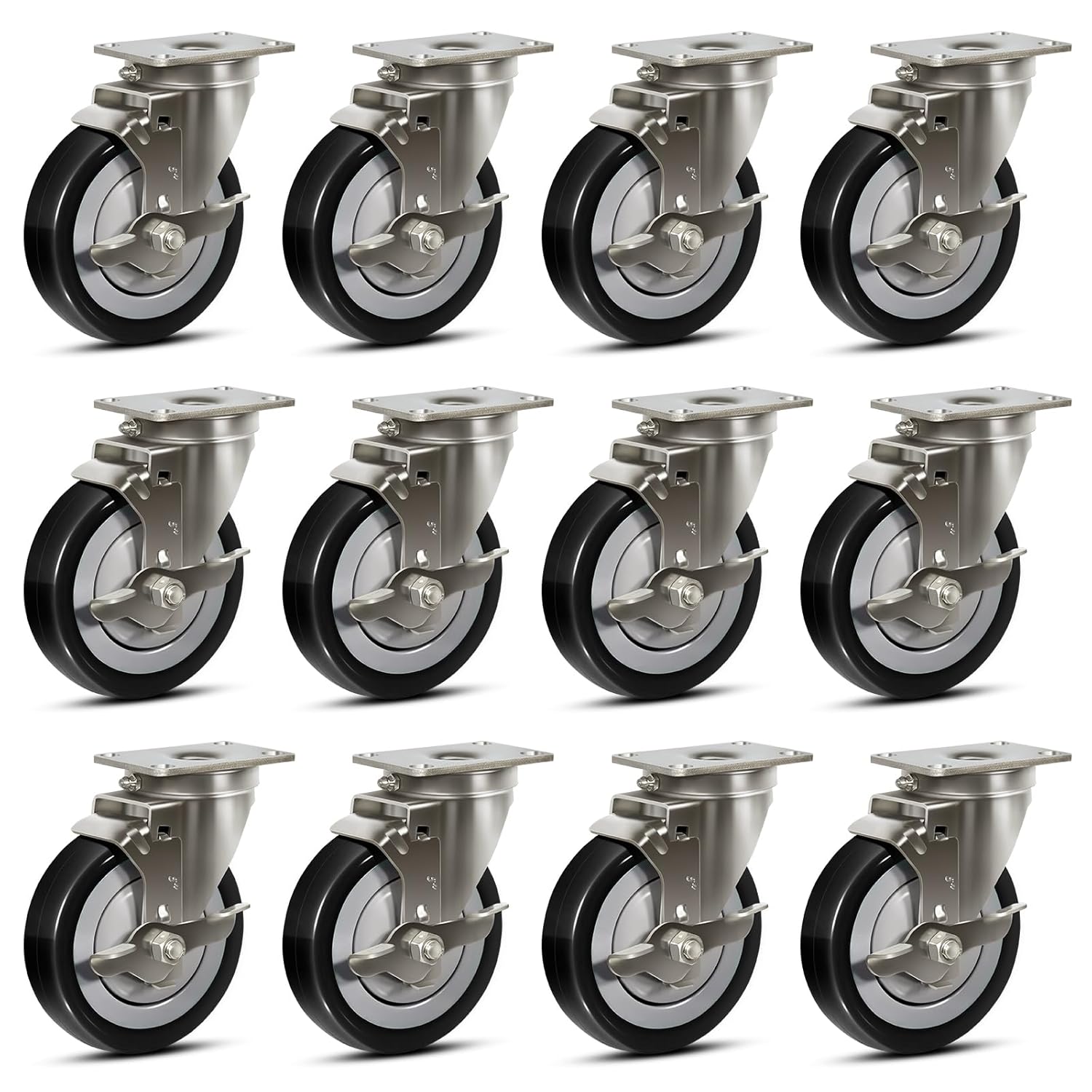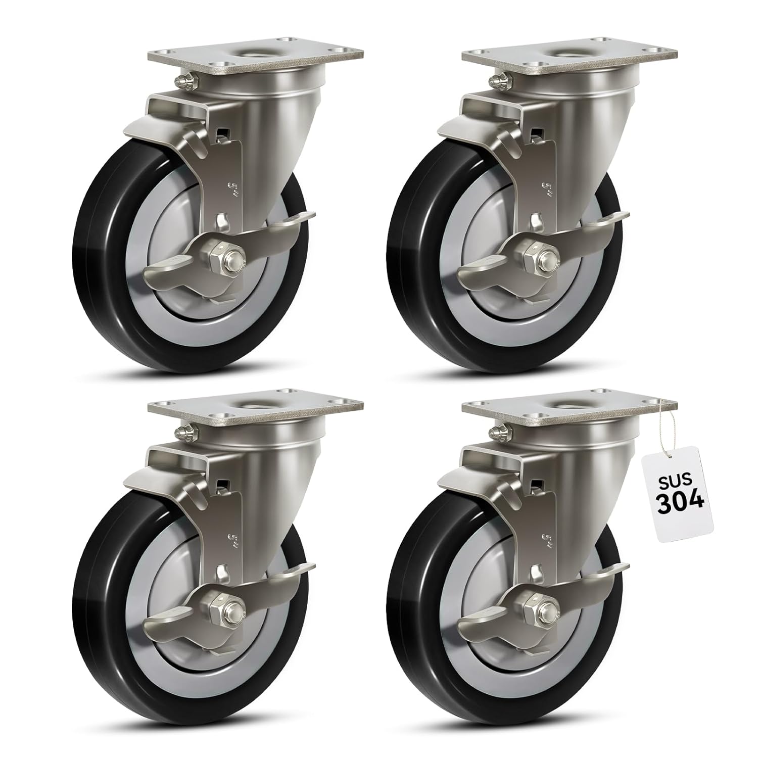 • Ideal for Sanitary Environments: Perfect for environments that require regular cleaning or prioritize hygiene, stainless steel casters are ideal for sanitary, restaurants, food service, healthcare, manufacture, laboratories, Bakeries and residential environments.