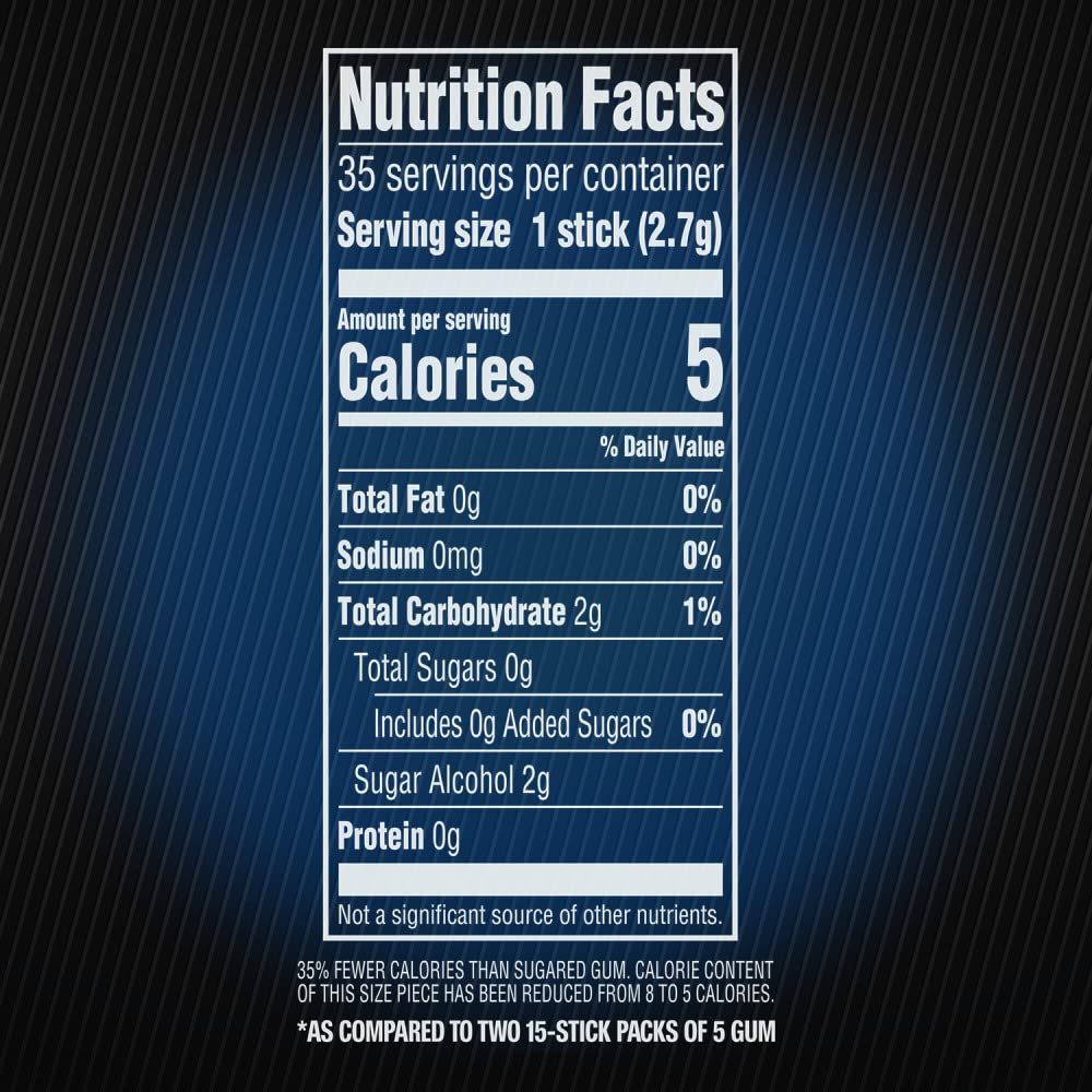 Product Description There are five seconds before you try something new and take a chance, stepping beyond your comfort zone. Your heart races, adrenaline surges through your body, all of your senses become heightened. It's terrifying and exciting. Will you play it safe, or make your comfort zone uncomfortable? This is the exhilaration of the moment of choice. The choice is yours. Make it count with 5 GUM Peppermint Cobalt Sugar Free Gum. Experience the invigorating blast of ice-cold peppermint flavor that awakens your senses and prepares you for whatever comes next. This bulk pack includes six (6) individual packs, each containing 35 sticks of individually wrapped sugar free gum, giving you a total of 210 pieces to fuel your boldest moments. Whether you're about to take the stage, push your limits, or simply navigate your day, 5 GUM Peppermint Cobalt provides the intense minty refreshment you need. Each stick delivers a cooling burst of peppermint flavor that stimulates your senses and gets you ready to turn your world upside down. Stock up with this multi pack and ensure you're never caught without the sugar free gum you crave. Perfect for keeping at home, in your car, at your desk, or in your bag for on the go refreshment. Don't just chew gum, experience it. Choose 5 GUM Peppermint Cobalt and stimulate your senses with every piece. Manufacturer Contact Information WM. Wrigley Jr. Company, Chicago, IL 60642