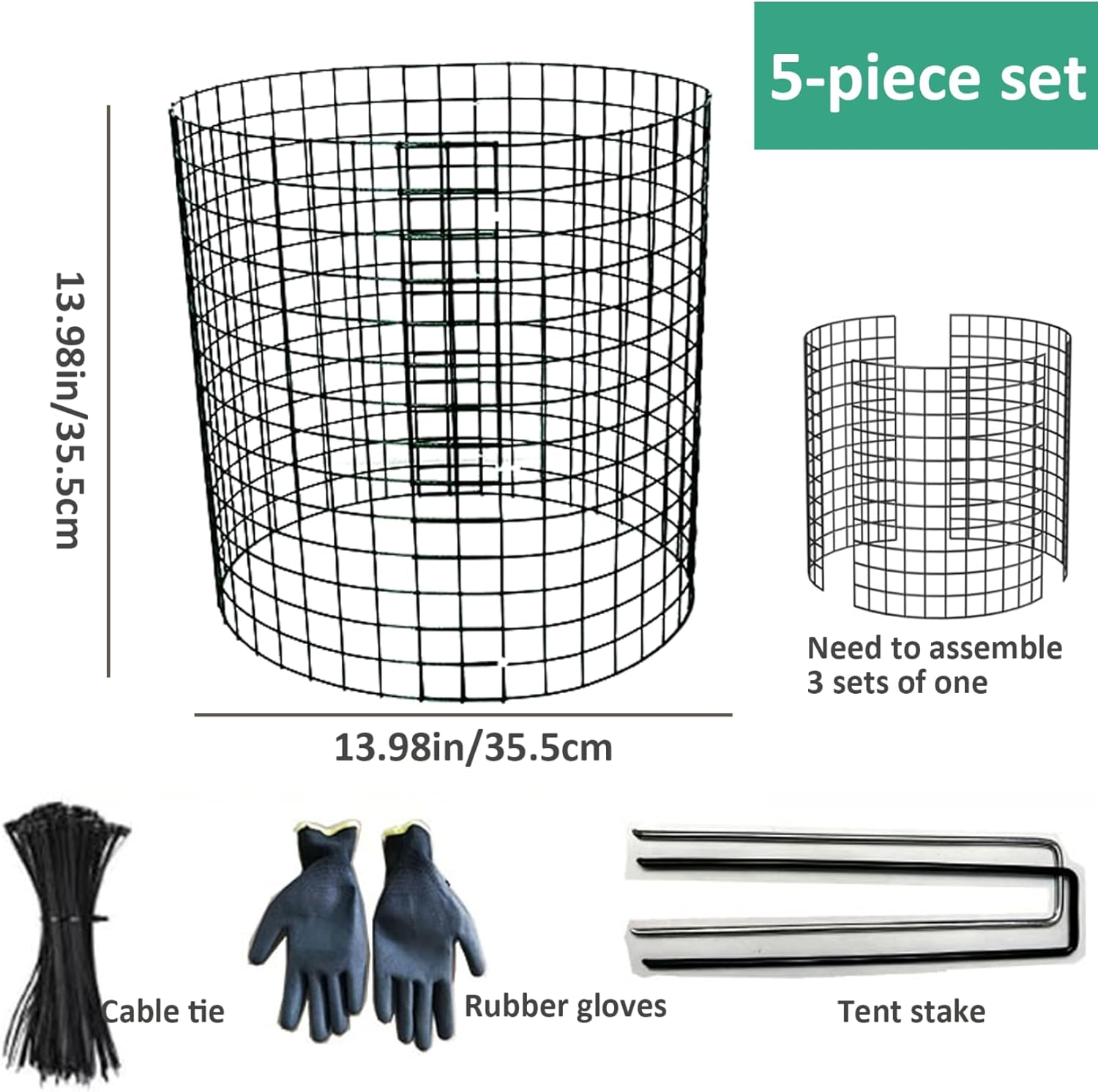 Description: Protect your outdoor plants effectively with the Plant Cages For Outdoor Plants. These covers provide a sturdy shield against animals and potential threats, promoting healthy growth. Each set includes essential components like metal nets, ground nails, zip ties, and gloves, ensuring your plants have ample protection in their outdoor environment. Constructed from steel wire with a rust-resistant finish, these plant cages are built to last and keep small animals at bay. Their easy assembly with a curved mesh design allows for a hassle-free setup, creating a standard circular protective space for your larger plants without the need for complex tools. Perfect for gardens, flower beds, and vegetable patches, these plant cages offer versatile and multi-functional protection for a variety of plant types. Upgrade your plant protection with these high-quality and convenient plant cages to ensure your outdoor plants in a secure environment. Features: Plant Cages For Outdoor Plants. -Color: Green. -Material: Steel Wire. -Size: About 35.5x35.5cm/13.98x13.98 inches. Note: Manual measurement, please allow slight errors on size. The colors may exist slight difference due to different screens. Package Including 15 Pieces Ground Nails, 100 Piece Zip Ties,1 Pair Gloves,5 Pack Plant Protectors.