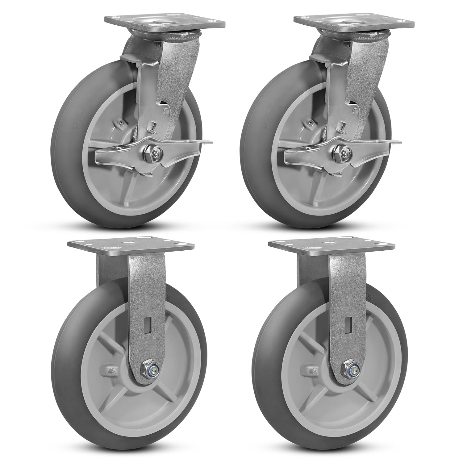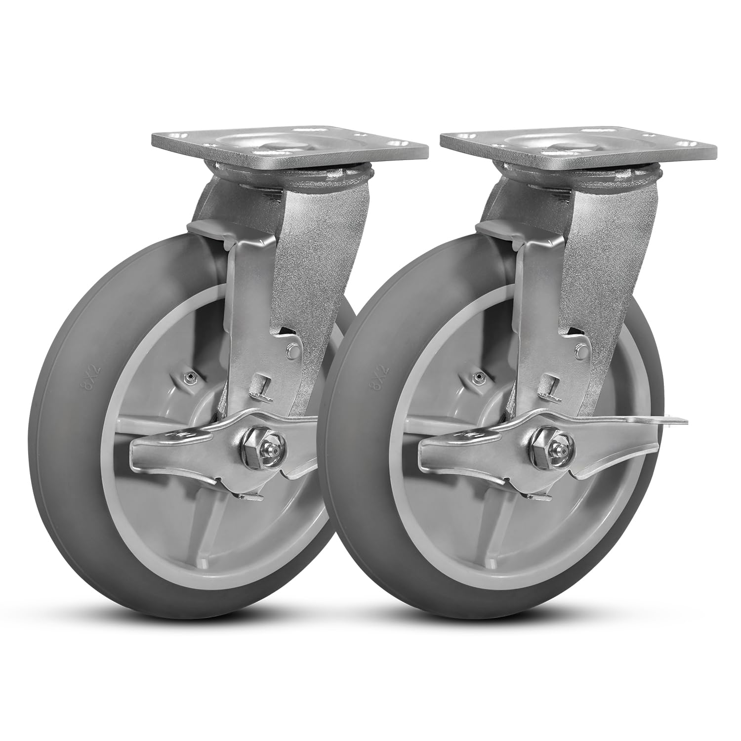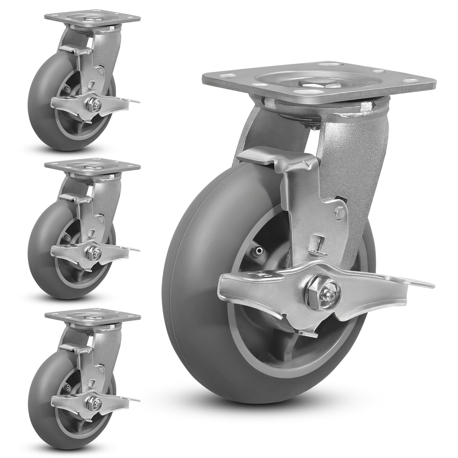 • NON-MARKING CASTERS:CWfutureparts's 6" x 2" Crowned Thermoplastic Rubber (TPR) wheels are built for durability and performance. Featuring a non-marking gray TPR tread bonded to a Polyolefin core,these wheels are softer than a standard polyurethane wheel you would normally use.