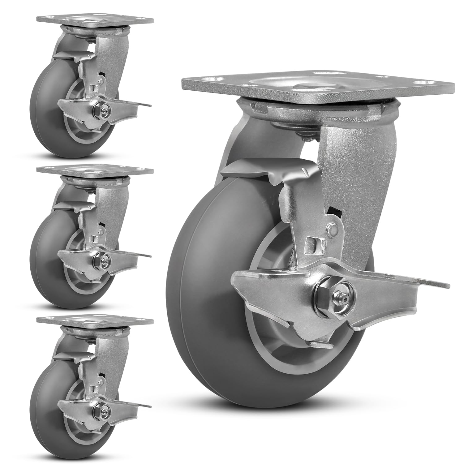 • WIDELY USED:These wheels are ideal for industries like hotels, hospitals, and labs.These gray soft rubber wheels are non-marring, nonmarking, quiet, absorb shock, vibrations, and protect equipment and floors and many floor surfaces.