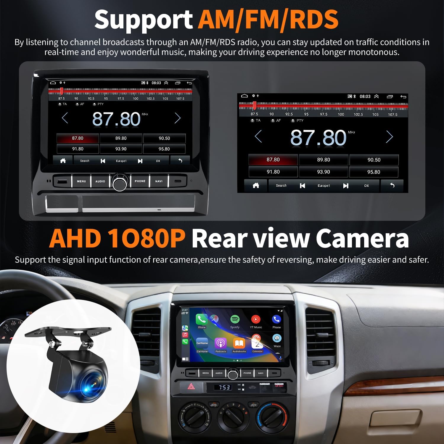 | BuiltIn Media | 1080P AHD Camera, 9 inch Car Radio Stereo for Toyota Tacoma |