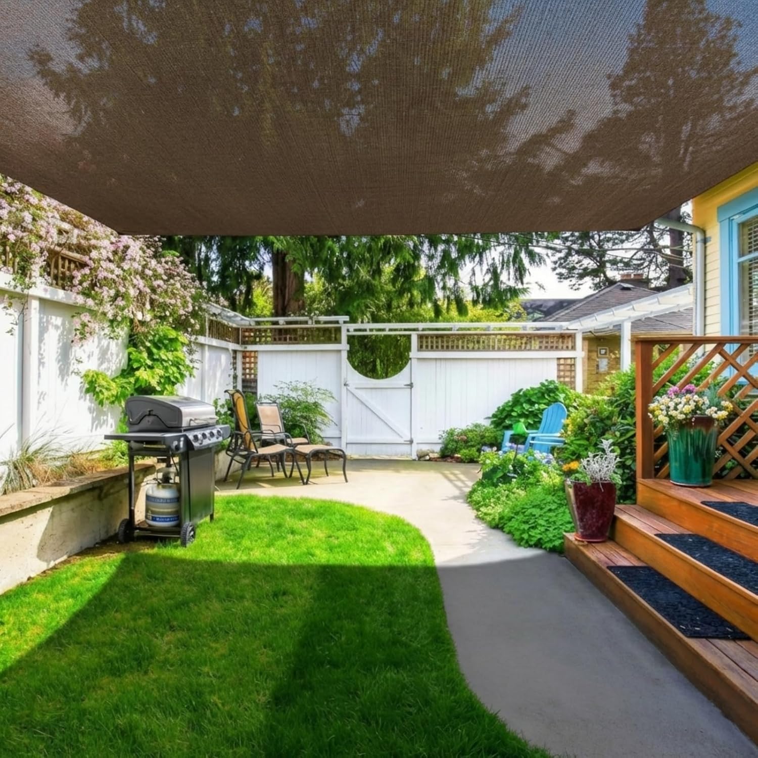 Features: Ideal for Large Outdoor Coverage: This large block of shade cloth is ideal for covering gazebos, patios, porches, play areas, privacy fences, pool areas, and more, providing comfortable shade and security for any outdoor environment. Simple Maintenance: Easily maintain and restore your shade cloth's original look with just soap and a hose. Keep it clean and ready for continued use, ensuring lasting protection and aesthetics. Specifications: Material: high density polyethylene (HDPE) Color: brown Size: all about 6 x 50 ft Package includes: 1 x Shade Cloth Notes: Manual measurement, please allow slight errors on size. The color may exist a slight difference due to different screen displays.