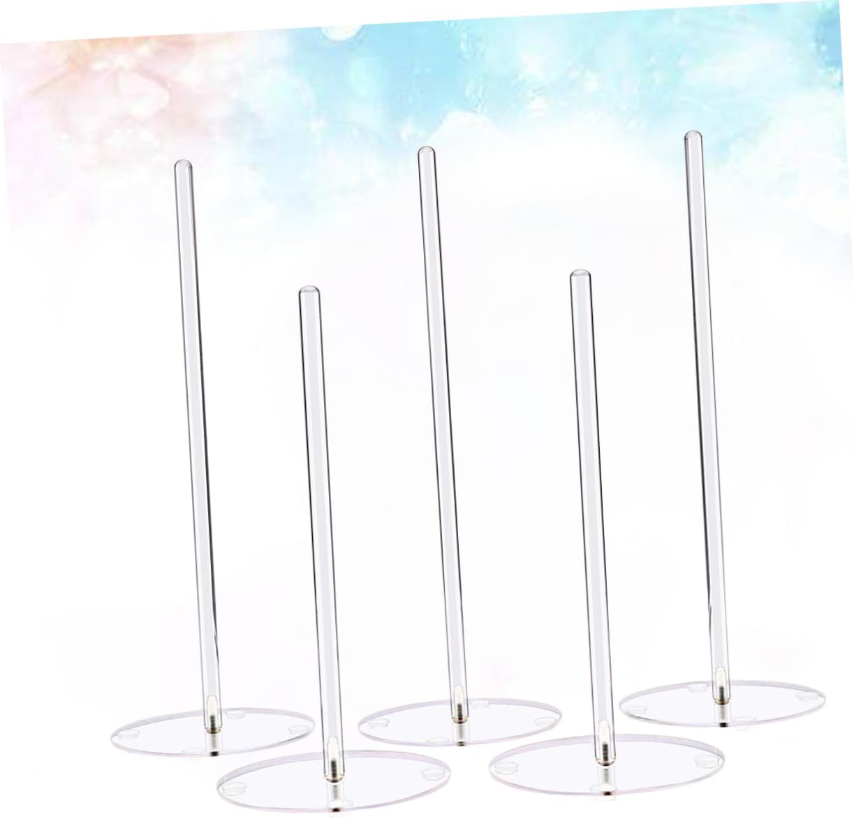 Package List 5 x Donuts Stands Characteristics - Size: About 15 x 15 x 38/25.4cm Donut Treat Stand. - Material: Wood. - Display treats in a fun and unique way with clear acrylic donut stands Acrylic Donut Stand. - The set of acrylic clear stands, includes 2 size, display donuts in a interesting way with clear acrylic doughnut stands Party Treat Stand. - ColorTransparent Party Donut Stand - A sturdy base allows it to stand upright on a table or flat surface Donut Display Stand. - or wedding, dinner party, reunions, anniversary parties, birthday, bridal shower, or other special party. - These clear display holders are made of acrylic, its transparent material looks neat and tidy, and is and stable enough to hold the donuts. Goods DescriptionParty Treat Stand Your guests will adore this to your celebrations as they help themselves to delicious donuts! for wedding, birthday, shower, etc.Party Donut Stand Try this donuts stand! Place the on a table for a show stopping party display