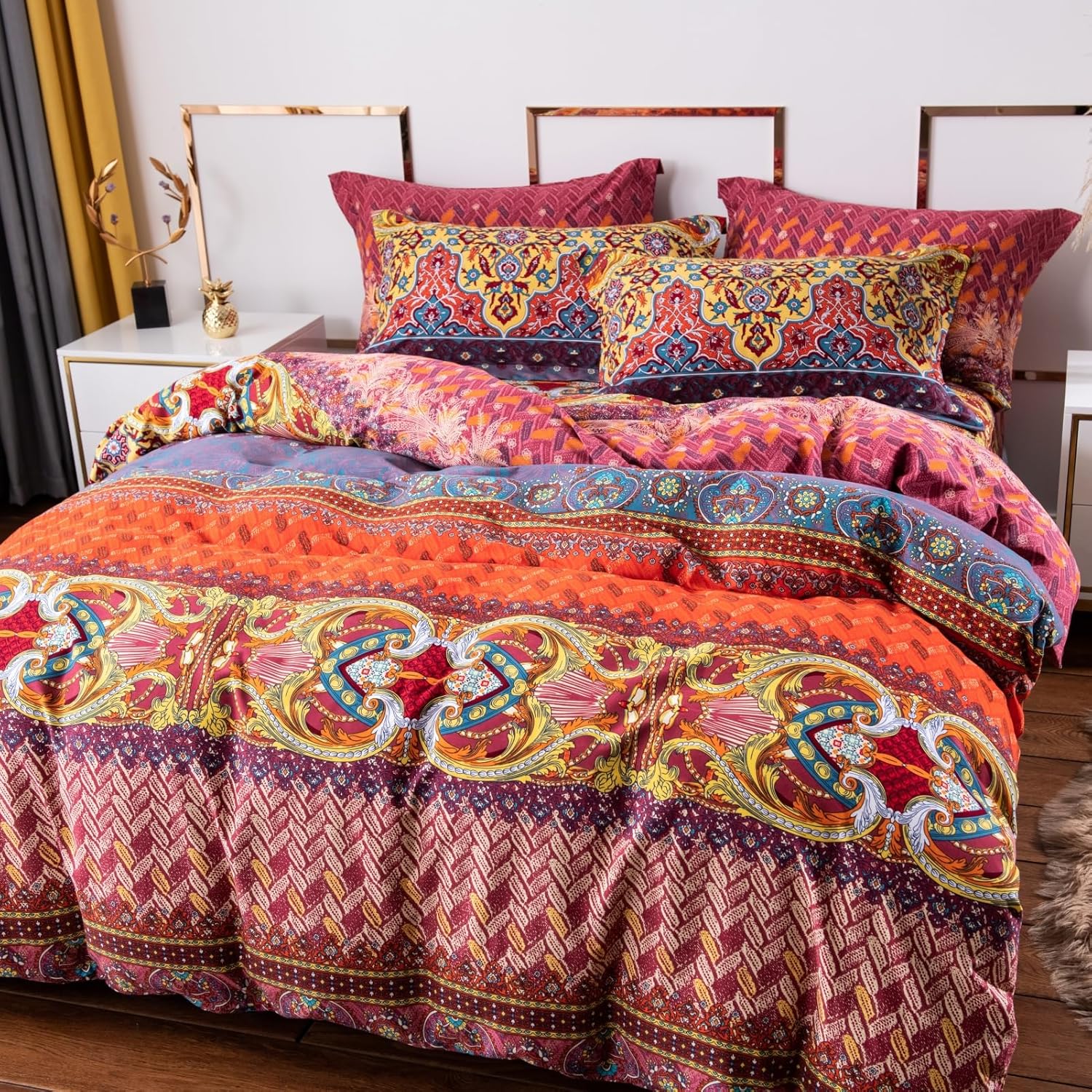 Material: High Quality Egyptian CottonWashing instructions- Machine or hand washable- Wash in cold water with gentle/delicate detergent ((below 35℃/95℉)- Do not bleach- Do not tumble dry (or tumble dry on low temperature)- Close the zipper before washingKindly Note1. Actual color may vary from the color on your screen due to monitor color restrictions and the difference of shooting light and angle. Kindly prevail actual product!2.The pillow shams are random cutting from the total fabric, sometimes not totally the same as the pictures, please understand.3. If any question,please no hesitation to contact us and you could get satisfied solutions within 24 hours.