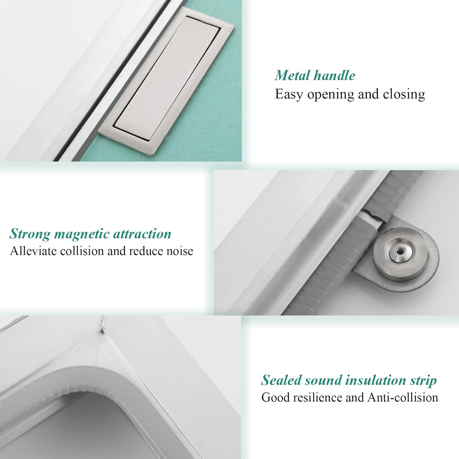 Introducing our premium inspection panel, designed specifically for seamless integration into your walls or ceilings. This concealed access point offers a discreet solution for maintaining and inspecting essential systems such as electrical, plumbing, and HVAC, all while enhancing the aesthetic appeal of your space. Crafted from high-quality aluminum and plasterboard, our inspection panel is not only durable but also customizable to fit your unique requirements. With a hole depth reservation of over 45 mm (1 3/4"), it ensures ample space for quick access to the areas you need to maintain. The surface can be easily painted or wallpapered to match your decor, allowing for a cohesive look throughout your home or office. Key features include: - Superior concealment that blends effortlessly into your environment. - A sturdy metal handle that allows for smooth opening and closing. - A convenient 90° opening angle for hassle-free maintenance. - Effective soundproofing capabilities, reducing noise for a peaceful atmosphere. - Custom size options available upon request, ensuring you find the perfect fit for your needs. Included in your purchase: - 1 x Access Panel - All necessary accessories for installation If you don't see the right size listed, please reach out to us for our customization service. We aim to provide a product that meets your specifications and enhances your living or working environment. Our commitment to quality service means that if you have any questions or concerns, we are here to assist you promptly. Choose our inspection panel for a practical and stylish solution to your maintenance needs, and experience the difference it can make in your space.