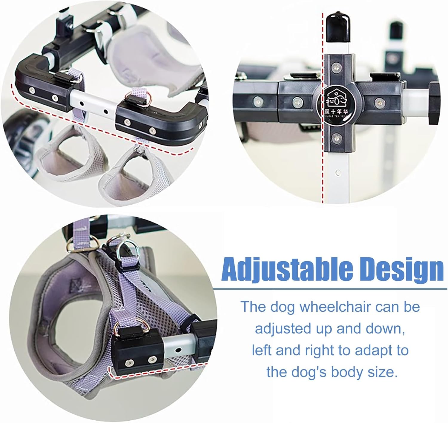 Give your furry friend the freedom to move and enjoy life again with our high-quality pet wheelchair. Designed for small to large dogs, this wheelchair offers essential support for pets who struggle with mobility due to injuries or disabilities. By eliminating barriers, your pet can rediscover the joy of running and playing, enhancing their overall well-being and confidence.**Product Features:**- **Durable Construction:** Made from lightweight aluminum alloy, our wheelchair is built to last while remaining easy to maneuver.- **Versatile Design:** With smooth, durable wheels, this wheelchair adapts effortlessly to various terrains, making outdoor adventures possible.- **Adjustable Fit:** The customizable design ensures that your pet is comfortable and secure, allowing for a tailored experience as they adjust to their new mobility aid.- **Pet-Friendly Design:** Our wheelchair features a separate section for easy potty breaks, ensuring your pet's comfort and convenience.- **User-Friendly:** Easy to assemble, clean, and maintain, this wheelchair is designed for busy pet owners.**Important Considerations:**- Please refer to the size chart carefully and measure your pet to ensure the perfect fit. A snug fit is crucial for your pet's comfort. - Transitioning to a wheelchair can take time. It's normal for your pet to exhibit initial reluctance. Provide gentle guidance and encouragement as they learn to navigate with their new support.**Customer Support:**- We are committed to your satisfaction. If you have any questions or concerns about our pet wheelchair, please reach out to us via email, and we will be happy to assist you.