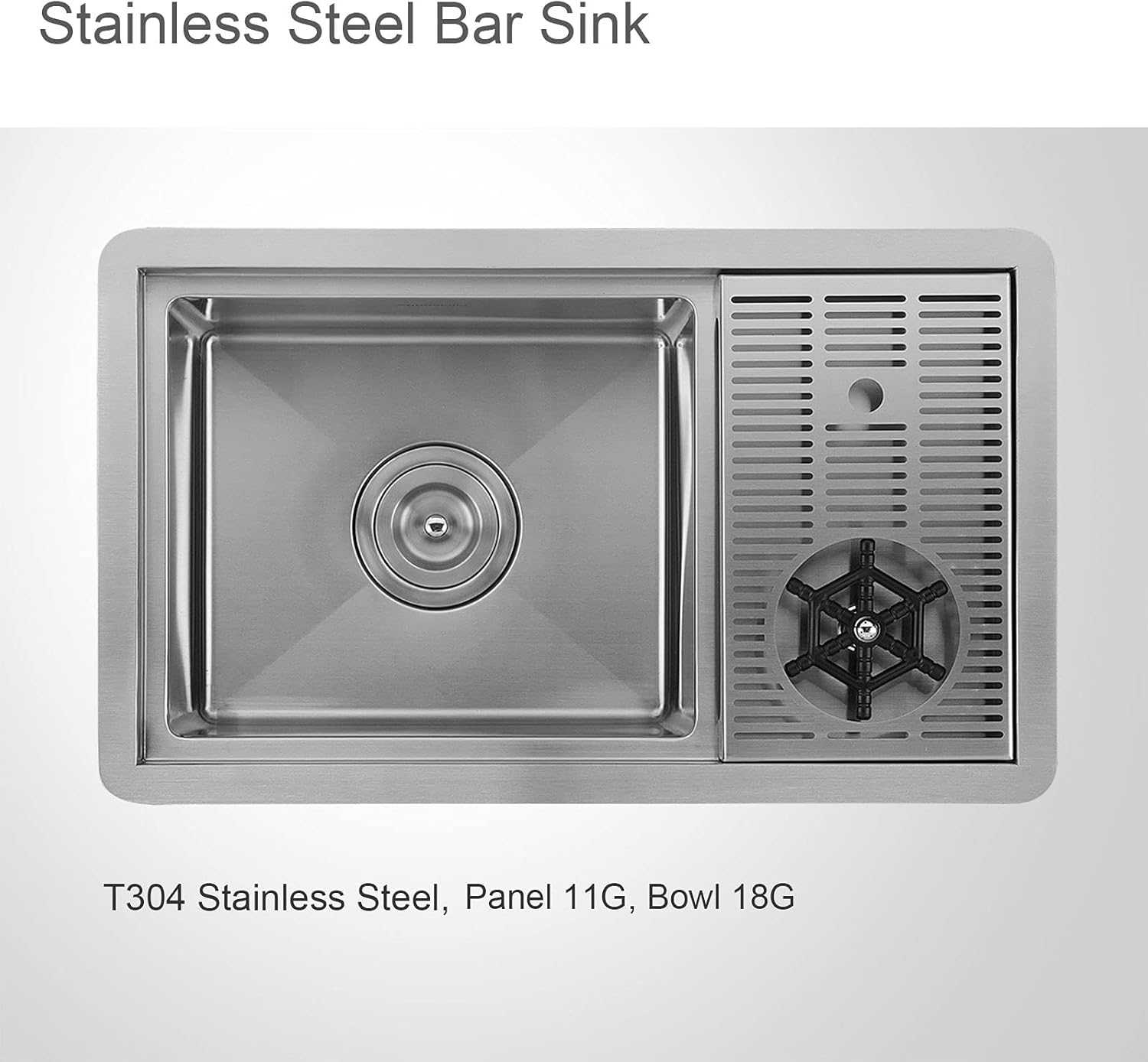 AS1514XSC Stainless Steel Bar Sink with Glass RinserAguaStella undermount bar sink with glass rinser is handcrafted by skilled artisans. It is designed for modern bar, kitchen and café. Made with T304 stainless steel, the corrosion & stain resistant finish doesn’t rust nor discolor. Easy to rinse glass clean in seconds by pressing, and easy to dry off cleaned glass on the drip tray. Just clean the bar sink by soft cloth or sponge in daily use. Installation Installation Method: Undermount Cutout Dimensions: 21-1/2" x 12-1/5" Min Cabinet Size: 26-1/4" x 17" Connection Size for glass rinser’s supply hose: 3/8" Dimensions Outer Dimensions: 23-1/4" x 14" x 9" Bowl Dimensions: 13" x 11" x 8-4/5" Radian Corner: R10 Drain Opening: 3-1/2" (standard) Drain Position: Center Length of Supply Hose for Glass Rinser: 31.5" Package Include 1 x Stainless Steel Bar Sink 1 x Drain Strainer 1 x Glass Rinser 1 x Stainless Steel Braided Supply Hose for installing the glass rinser 1 x Box of Mounting Hardware 1 x Cutout Template & Installation Instruction AS1010BN Brushed Nickel Bar Faucet Spout Swivel: 360° Water Feature: Mixed hot and coldDimensions Overall Height: 11-4/5" Spout Height: 7-1/2" Spout Reach: 6"Connecting Hose Length: 29-1/2" Connecting Size.: 3/8" (US Standard)Thread Diam. of Hot & Cold Connecting Hoses: 9/16" Installation Installation: Deck mounted Holes Required: 1 Hole Size: 1-3/8" Max Deck Thickness: 2-1/2"Min Clearance to Backsplash: 3" Package Includes 1 x AguaStella Bar Faucet 1 x User Manual