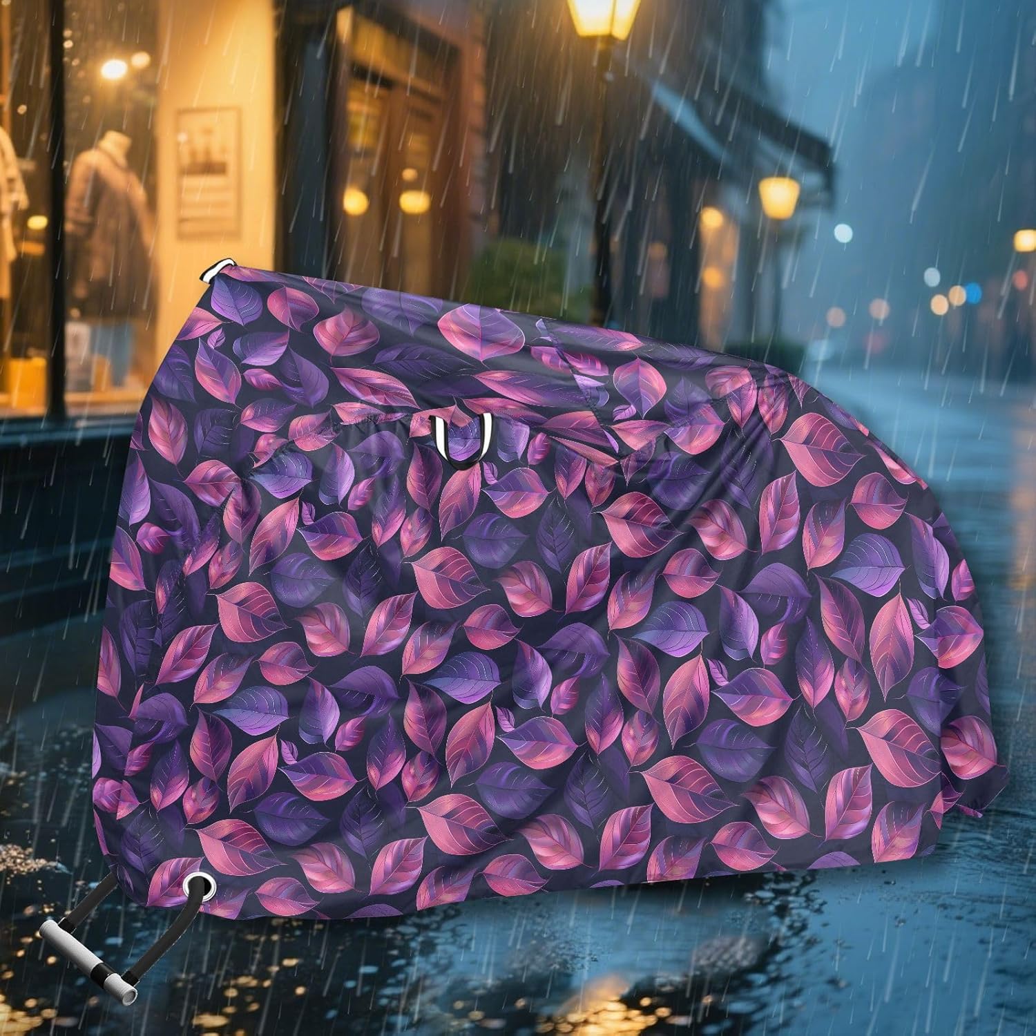 Protect your bicycle in style with our premium bike tarp, engineered for maximum defense against harsh elements. Unlike basic covers, we use specially engineered umbrella waterproof fabric - the same advanced material used in high-end rain umbrellas - delivering superior performance with unique visual appeal. Sun & Heat Defense Our fabric creates a physical cooling barrier that actively lowers your bike's temperature by: Blocking 95%+ harmful UV rays to prevent paint fading Providing exceptional shading & heat insulation (up to 20℉/11℃ reduction vs direct sun) Offering SPF 50+ equivalent protection for sensitive components Rain & Dust Protection Water-repellent coating causes rain to bead and roll off Tightly woven fabric acts as dustproof barrier for long-term storage Prevents moisture buildup with breathable side panels (prevents condensation) User-Focused Design LOCK ACCESS HOLE at front wheel enables secure locking without removing cover ADJUSTABLE BUCKLE STRAP at rear wheel anchors cover during strong winds Reflective safety strips on handles enhance nighttime visibility Ultra-lightweight (23 oz) folds into included pouch Unbeatable Aesthetics Choose from over 1,000 designer patterns - from sleek geometrics to vibrant nature motifs - transforming your bike into a street-style statement while competitors offer only solid colors.