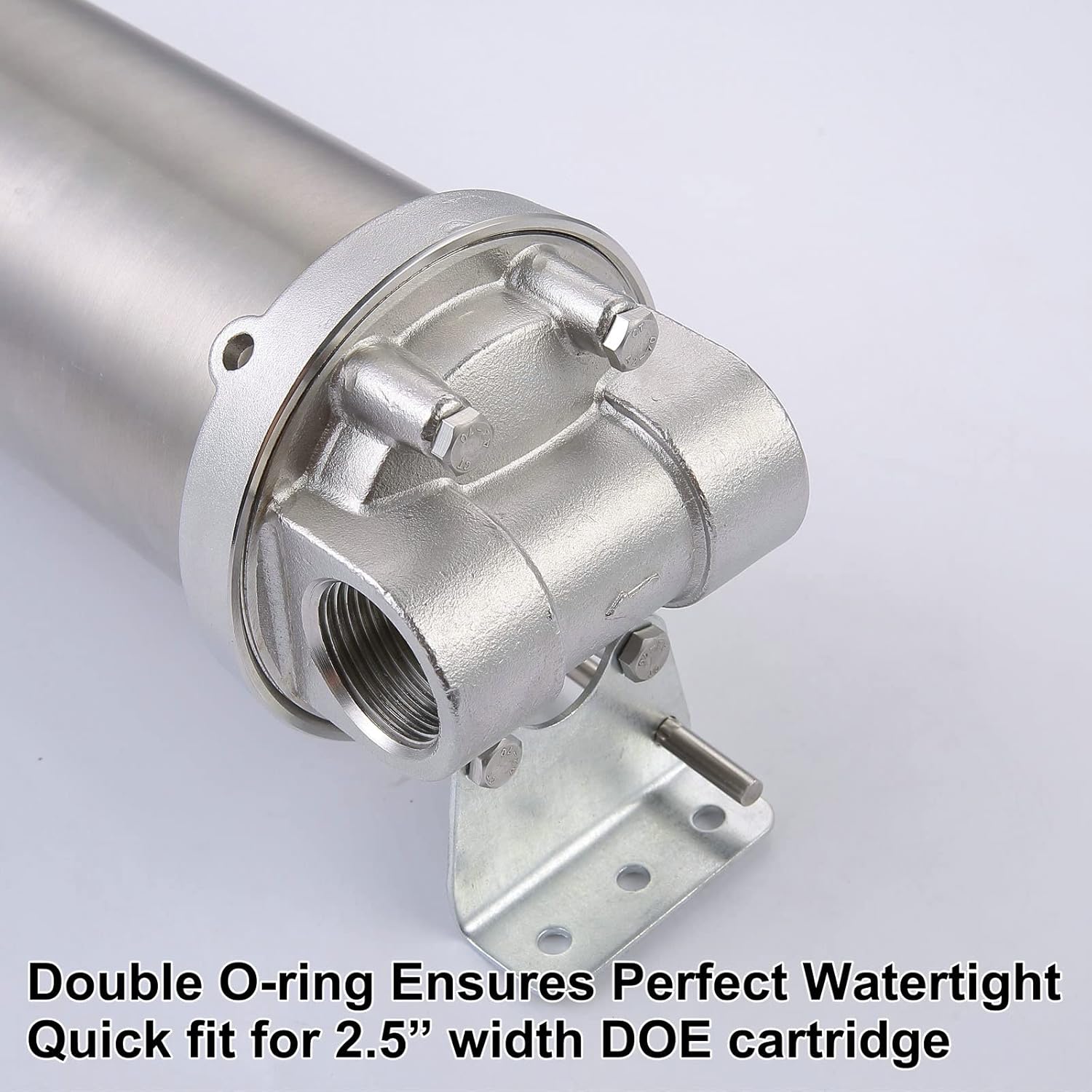 | Product Benefits | The stainless steel filter housing is made of non-toxic material for durability and corrosion resistance and facilitates quick and easy installation. Double O-rings ensure perfect water tightness and no leaks. |