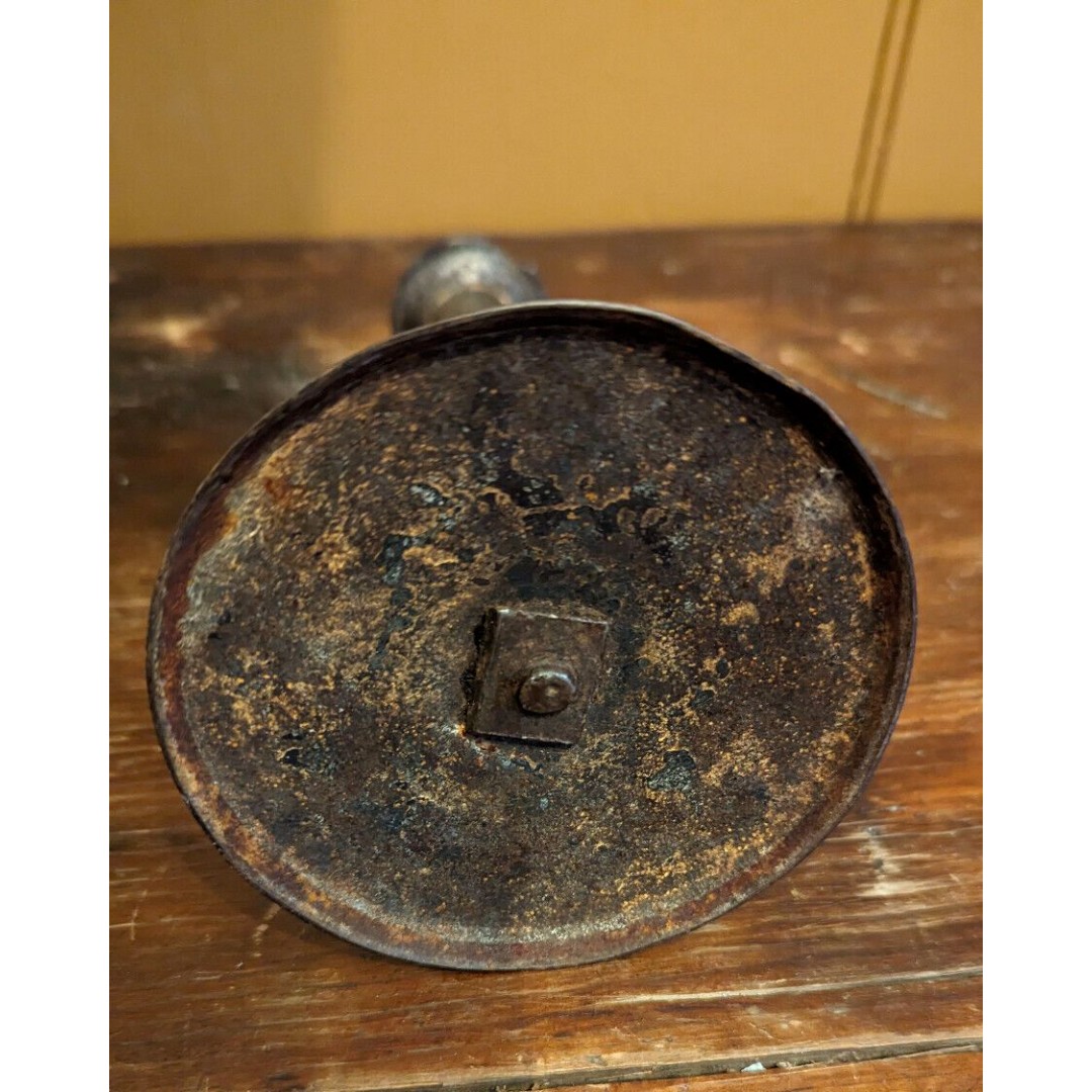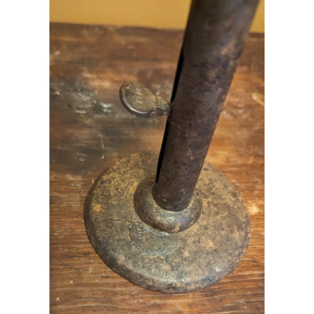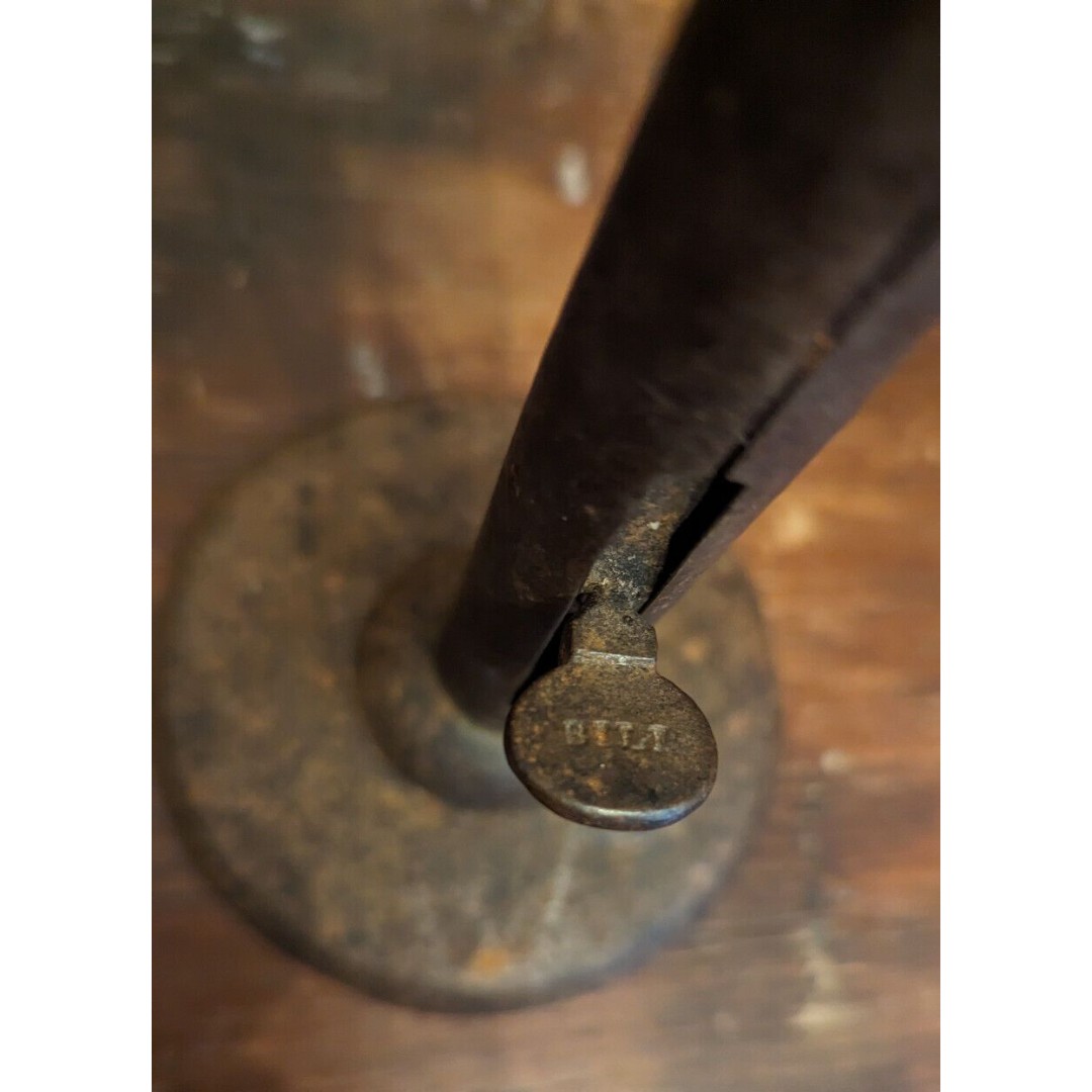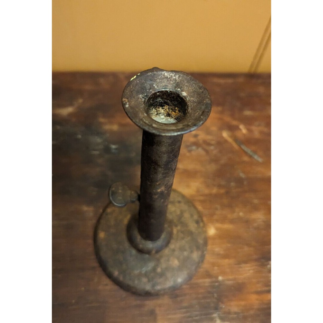 Antique 19thC. Primitive Iron 7" Signed Hogscraper Push-Up Candlestick Hog