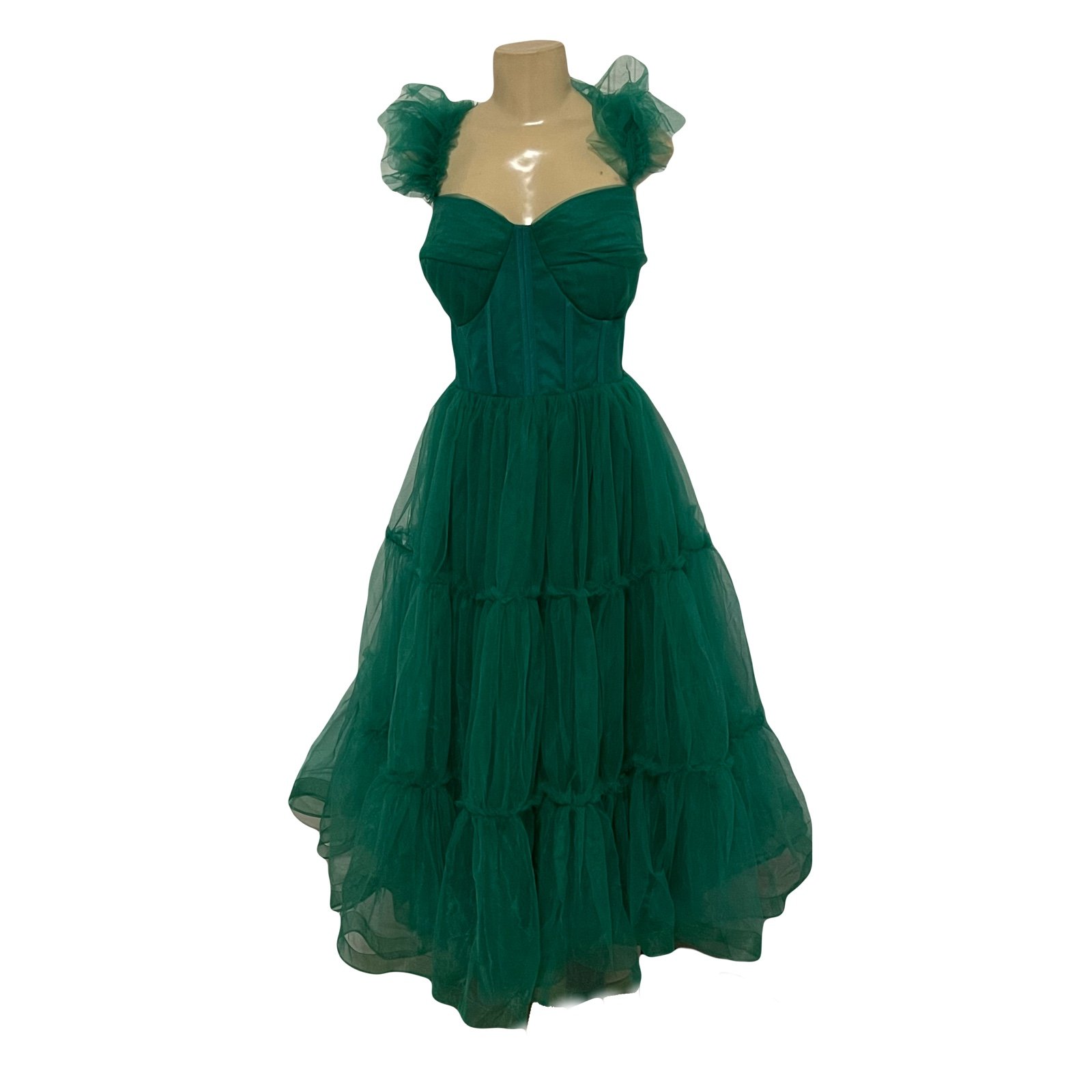 This is a beautiful dress that is very high quality. This is the Mia dress in Forest Green. This is in great condition it was only worn once. This is a size L-XL. please see measurements.