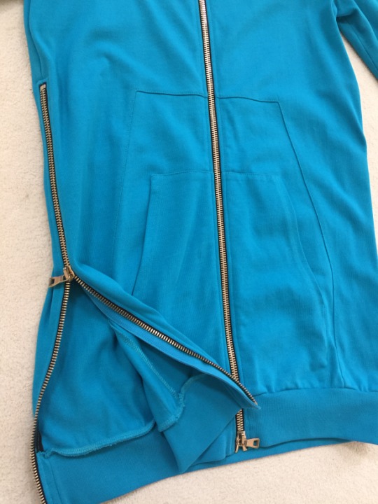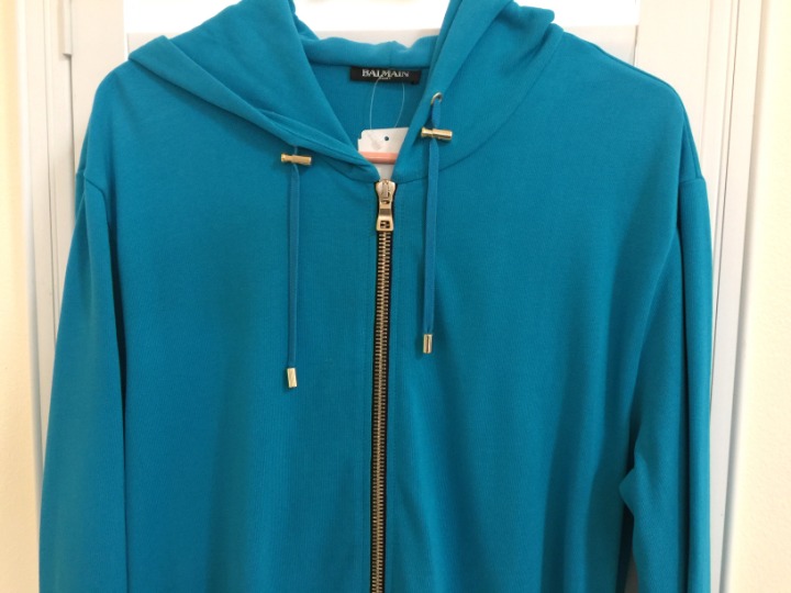Balmain Paris Mens Turquoise Long Hooded Sweatshirt Double Pockets Zip-up Side Zip Size Large
