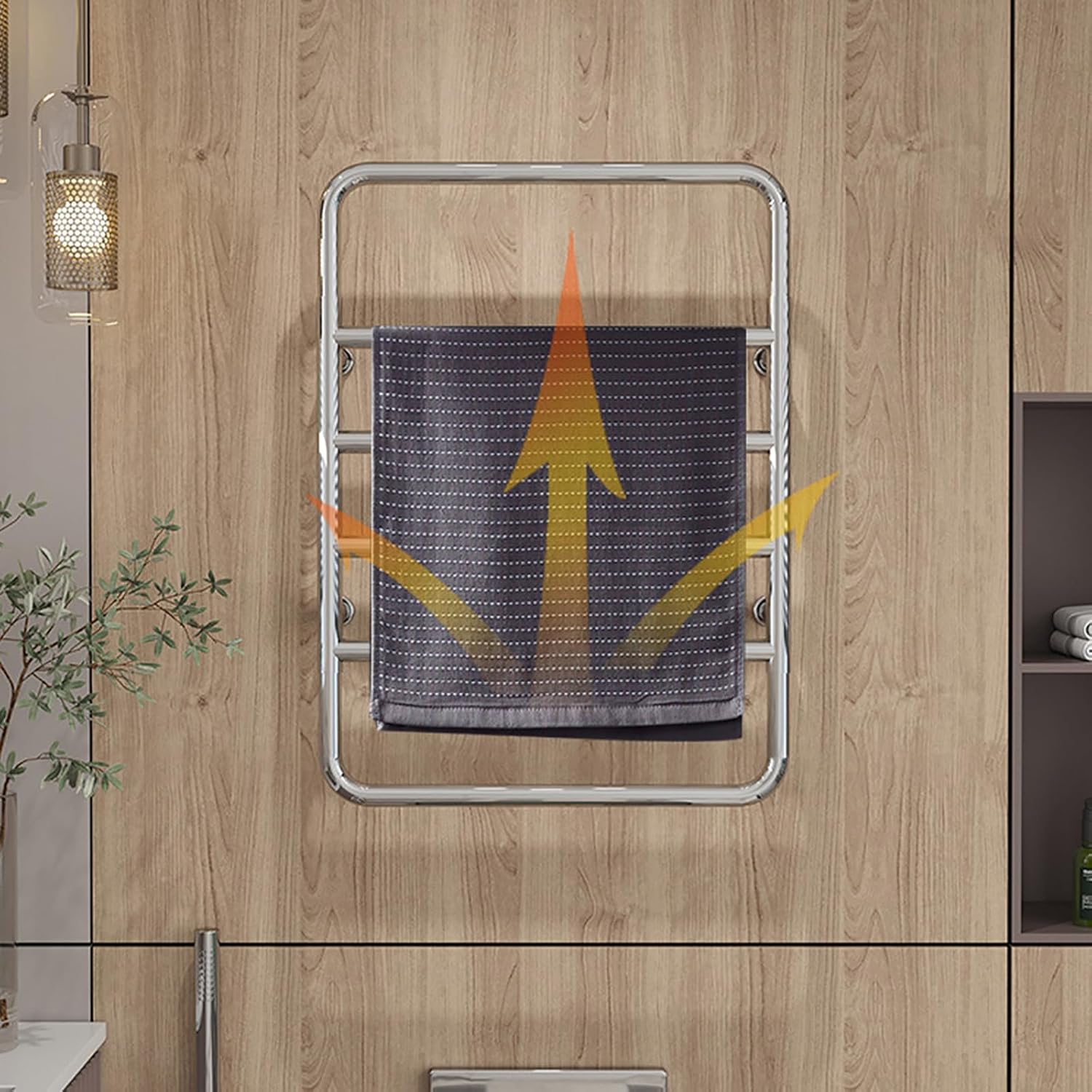 DESCRIPTIONWarm towels as soon as you step out the shower? Who could resist? Turn those thoughts into a reality with this on-wall heated towel rail. Made from Stainless Steel, The electric towel rail to rapidly heat up and reach a temperature of around 55 degrees. multi-bar design gives plenty of room for plenty of towels and robes. suitable for family households. SPECIFICATIONProduct name: electric towel rack/ towel warmersColor: BlackMaterial: Stainless SteelPower:57WHeating method: Carbon Fiber HeatingHeating time: 5minThermostatic: 45 °Waterproof rating: IP56Load capacity: 10kgProduct Size:50*68cmMain functions:Hang, store, heat, and dry towels or clothing.Use Scenario: Bathroom, hotelPACKING LIST1 x towel heaterTip: 1.This product does not contain towels.2.Since the size is measured manually, there is a 1-3 mm error. Please refer to the actual product.3.The picture is the actual product. However, slight chromatic aberrations may occur due to different lighting and display settings.