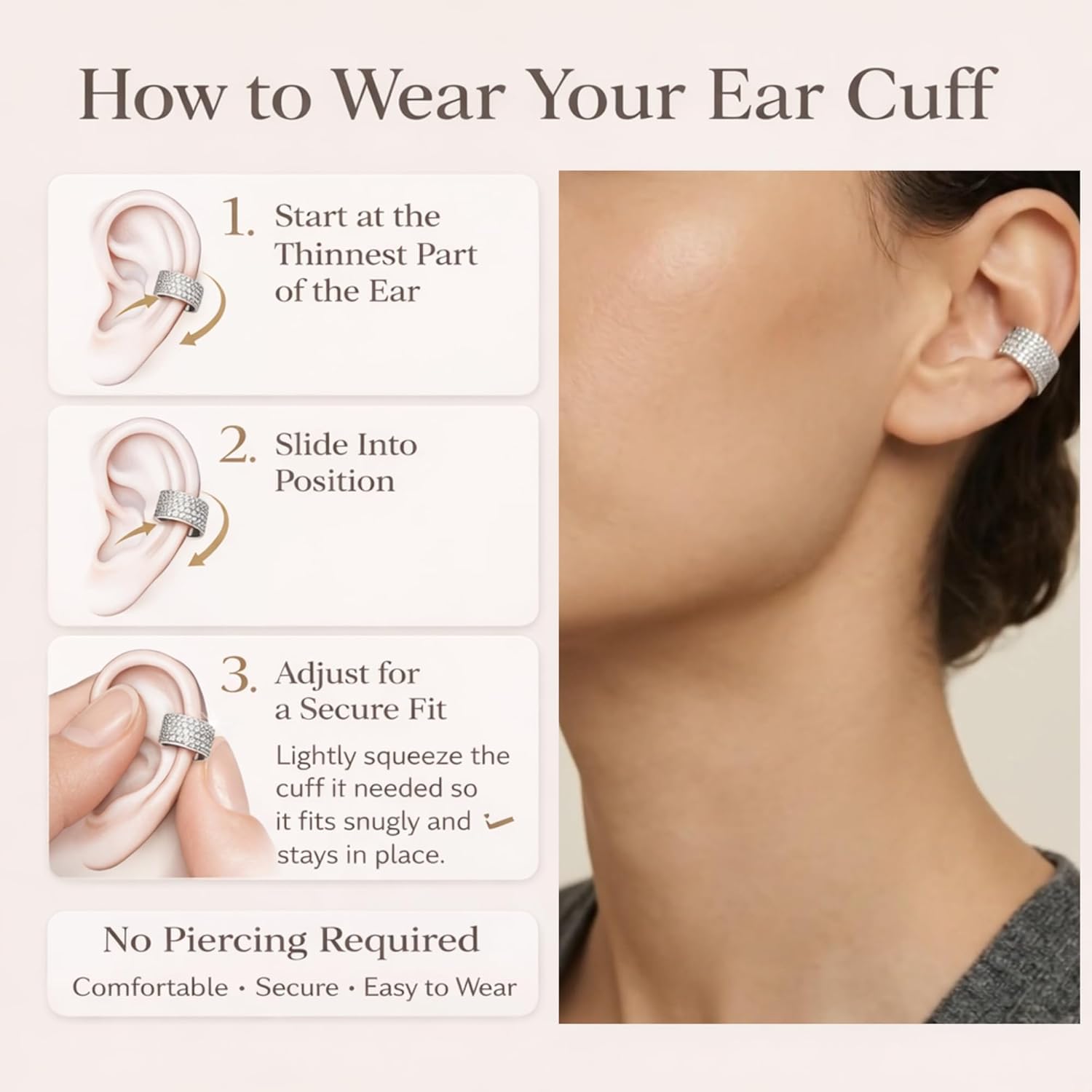 WARDROBE ESSENTIAL: This micro Pave CZ single cuff earring is just right for any occasion. The simplicity of this cuff earring complements any style or earring stack. The sparkling micro pave cubic zirconia makes a bold statement without overpowering your style. SIMPLY CHARMING: A safe choice as this design will never go out of style. The open cuff is great for everyday wear, and worn even if you do not have your ear pierced. It is also nickel free and hypoallergenic so it does not affect your skin. This gorgeous textured earrings are incredibly lightweight and subtle which makes this creation a sight to behold.