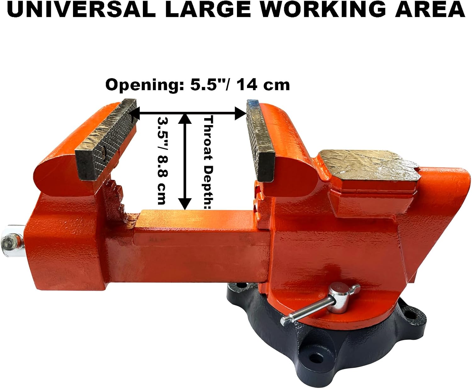 The swivel base vise is ideal for homes and workshops. It adopts high-strength ductile iron, a 360-degree rotation base, and a lockdown device for longer service life and more convenient use. You will be able to lock down all of your big projects and get to work in no time. Heavy duty cast iron 6 inch bench vise for drilling, pipe cutting & woodworking etc.