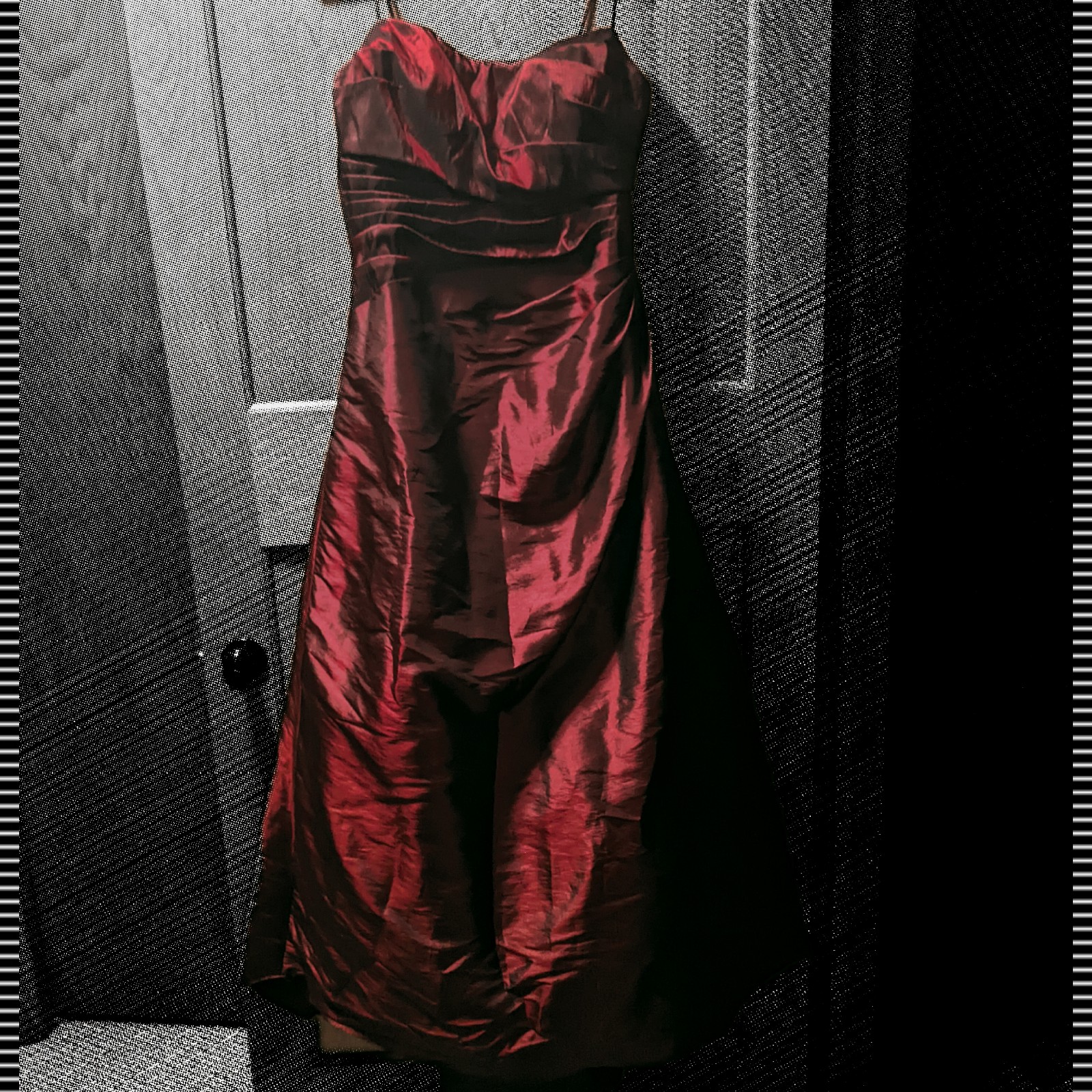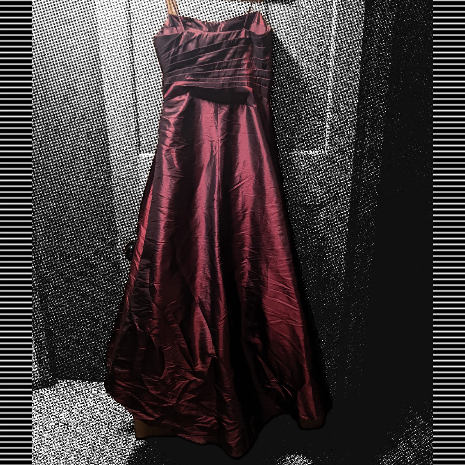 Chic strapless design with a flattering spaghetti strap hold and tight draped silhouette. Rich burgundy color adds sophistication and wit.