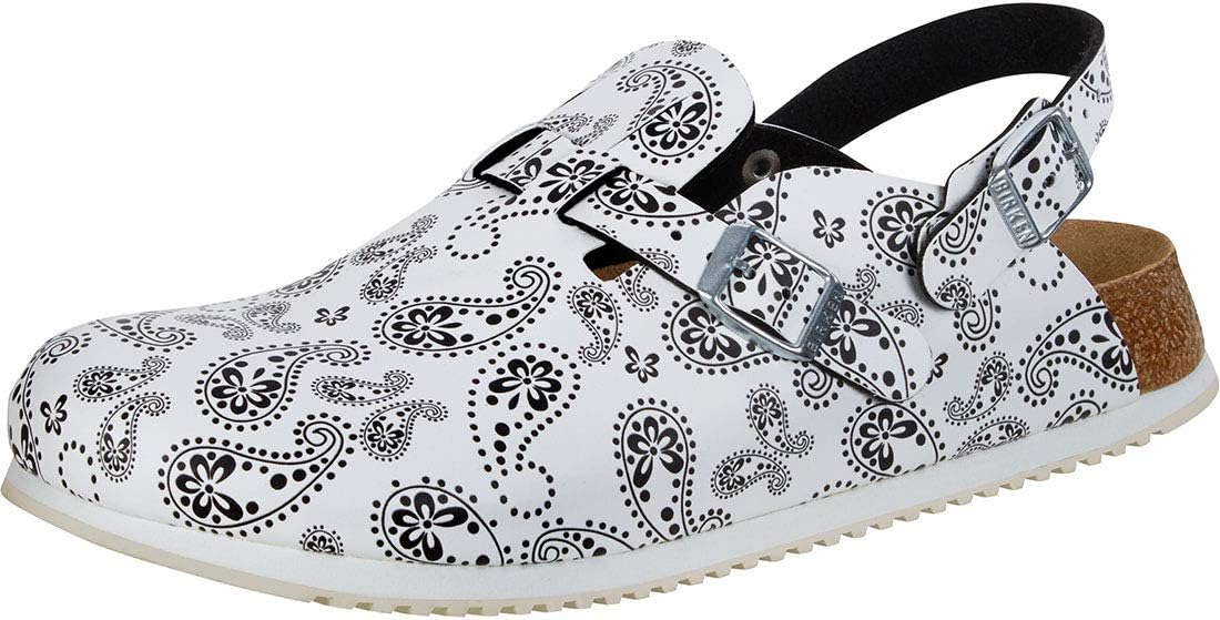 The BIRKENSTOCK Kay is the clog with foldable heel strap, which offers high-quality workmanship and absolute safety in leisure and work. The strap ensures that the foot has a secure hold in the shoe and cannot slip out - even if it gets a little hectic. The super outsole consists of two components: a highly shock-absorbing midsole made of EVA and a non-slip rubber outsole tested according to EN ISO 13287:2012. The outsole is also oil and grease resistant. The Kay model is ideal for everyday use in hospitals, kitchens and catering.