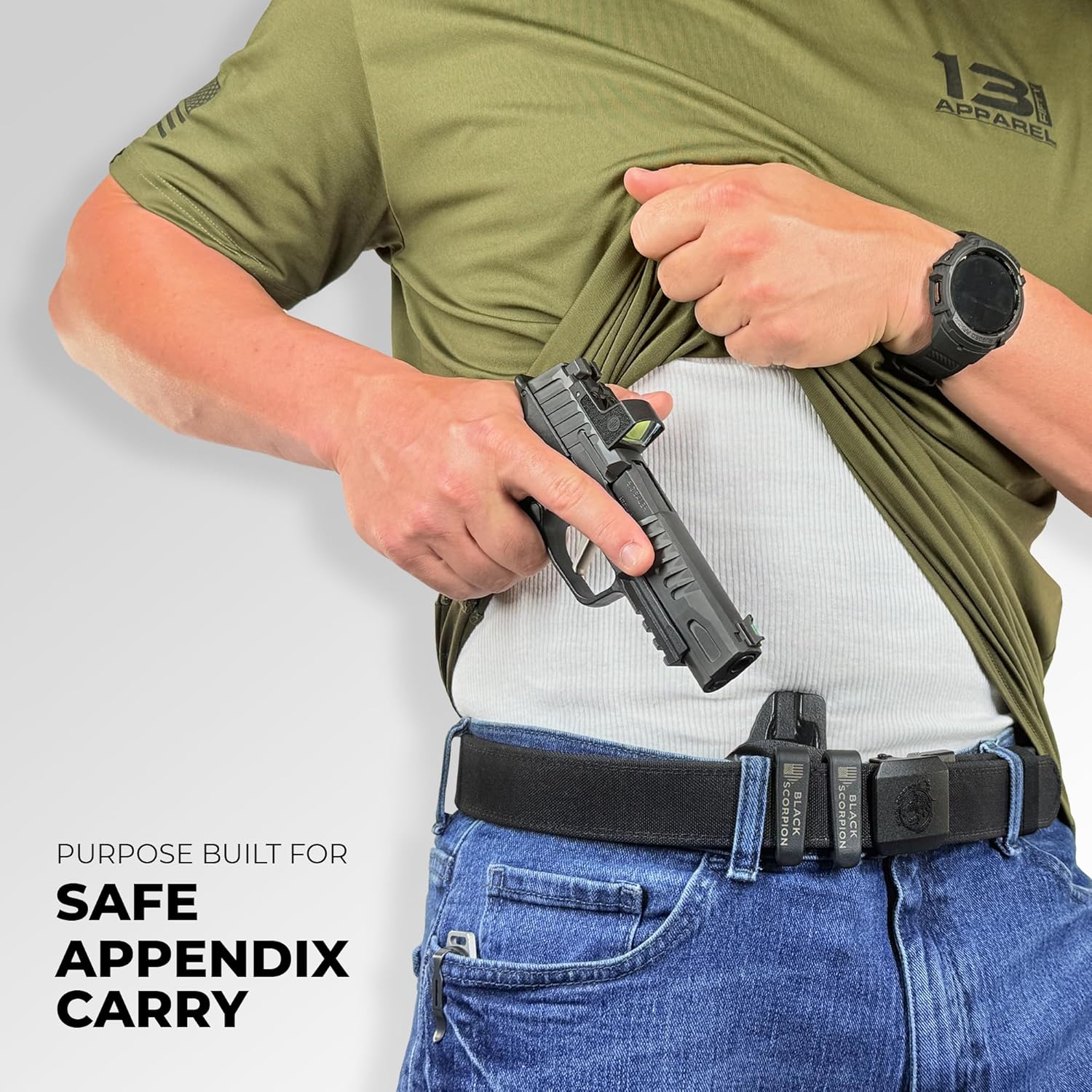 Experience the next level of appendix carry with the AIWB Dual Clip X Holster, engineered to provide seamless concealment and all-day comfort. Meticulously designed to reduce your firearm's profile, this holster makes your gun virtually disappear while maintaining easy accessibility. Perfectly contoured to your body, the AIWB Dual Clip X Holster blends organic angles and curves to fill the voids between the gun and your body, enhancing both comfort and concealment. The dual tuckable belt clips are optimized for 1.5" belts, ensuring a secure yet discreet carry. Whether you're navigating your daily routine or needing quick access in critical moments, the AIWB Dual Clip X Holster delivers exceptional concealment without sacrificing comfort or draw speed.