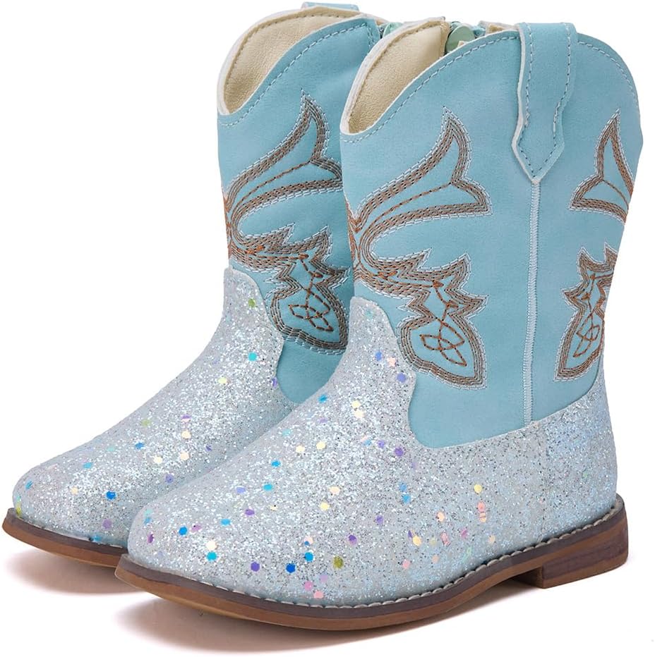 BMCiTYBM Toddler Cowboy Boots Western Cowgirl Boots Boys Girls Mid Calf Square Toe Riding Walking Shoes