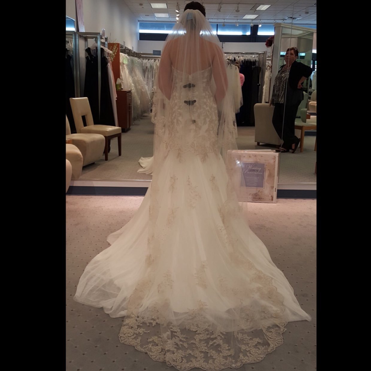 Due to the fact that it is still in its sealed plastic packaging from the warehouse, no try-ons will be allowed. Size 12 in wedding gowns is approximately size 8 in regular dress size. DOES NOT COME WITH VEIL