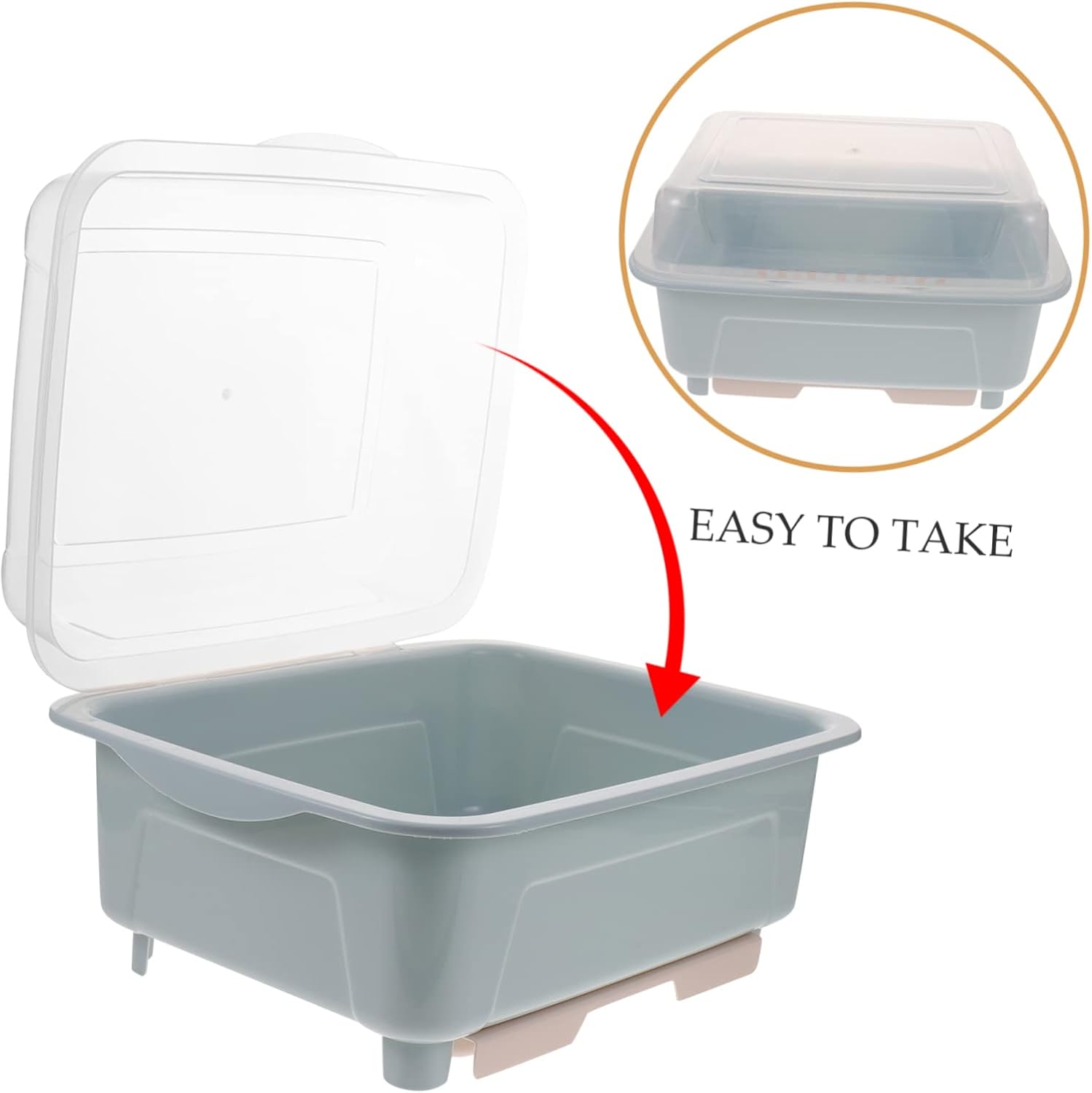 Package List 1 x dish drying rack Features -This dish drainer is small spaces such as kitchen countertops, under the sink, cabinets or shelves, etc bottle drain rack. - Size: 33.00X26.00X18.00cm/12.97X10.22X7 dish drying rack with lid. -Material:PP kitchen dry rack -Made of food-grade material, safe and reliable, stable in structure, and feeding bottles rack. -The drip tray at the bottom allows water to flow directly into the tray, keeping the tabletop dry and avoiding water accumulation dish drying basket. - Color: Blue dish drying holder -With a transparent dust cover, you can clearly see the drying condition of the tableware in the box, and the cover can be removed kitchen draining rack. -Widely , chopsticks, forks, plates, spoons and dishes are stored, which is convenient to use counter dish drainer.Goods Descriptionhousehold dish drainer Designed with draining feature, it is a great kitchen dish drying rack.nursing bottle drying rack Made from high-grade material, safe and healthy for storage.kitchen drainer Our kitchen Dish Rack is ideal for storing cups, bowl, chopstick and dish.tableware draining holder Adoption of simple and convenient design, Dish Drying Rack can give you a good using experience