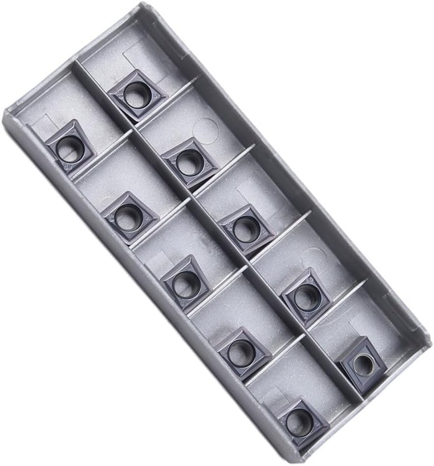 Product description Features:* Strong grip, strong resistance, and obvious advantages in large trimming processing speed.* Maintaining strict tolerances, unparalleled performance.* Practical and for versatile processing environment, even in very dirty environments such as cast iron, it can maintain performance.* User clamping, For easy to replace, only a wrench is needed to the replacement of inserts and gaskets.* Good rigidity and long life of accessories, reducing the user's tool cost.Specifications:Part name: Turning insertsModel: CCMT09T308-SMMaterial: CarbideColor: As shownSize: Side length: Approx. 9.525 mmThickness: Approx. 3.97 mmQuantity: 10pcsPackage Contents:10 x CCMT09T308-SM InsertsNote:1.The real color of the item may be slightly different from the pictures shown on website caused by many factors such as brightness of your and light brightness.2.Please allow slight manual measurement deviation for the data. Manufacturer Contact Information PETiB