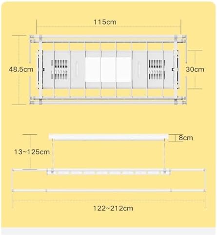 Ceiling Clothes Dryer Wall and Ceiling Clothes Dryer Aluminium,Easy installation in any home or living situation. Electric Clothes Hanger Remote Control Lifting Ceiling Drying Rack Automatic Household Drying Balcony Clothes Hanger Name: Electric Clothes Hanger Material: Aluminum Alloy Color: White/Black Rated voltage: 220V/50Hz Host size: 115x30cm Overall size: 212 * 48.5cm Working load: 35kg Installation method: surface installation/concealed installation Packaging included: 1 pc * Drying Rack(Including all installed accessories) Notice: 1. Please check the size before buying. Due to manual measurement, an error of 0-3mm will occur. beg for mercy! 2. Excluding items other than the drying rack in the product photos. 3. Please note that due to different monitors, there may be slight color difference, please understand. 4. The above data is for reference only, the size is manually measured, each variable may be different, please refer to the actual product, thank you. 5. If you find any problems with our products, please feel free to contact us via email, we will solve the problem as soon as possible.