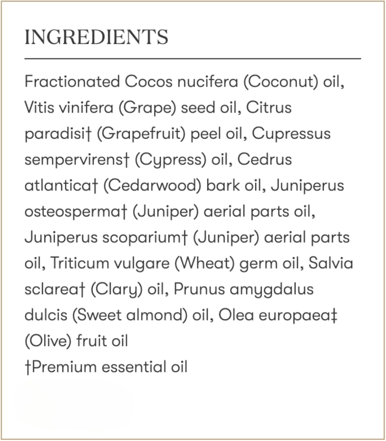 | Special Ingredients | Grapefruit, Cypress, Juniper, Cedarwood, Clary Sage |