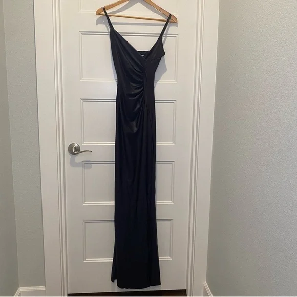 Chiara Boni La Petite Robe Black Marghetta Ruched Maxi Dress Gown Size US 2 , IT 38Marghetta ruched gown from CHIARA BONI La Petite Robe featuring black, stretch-design, wrap design, ruched detailing, spaghetti straps, V-neck, side slit, straight hem and long length.Brand new with tagsGreat for the holidays or events