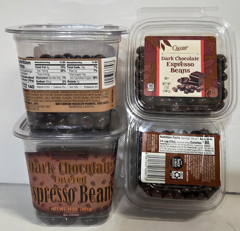 Choceur & Trader Joe Dark Chocolate Covered Espresso Beans (Four Tubs)