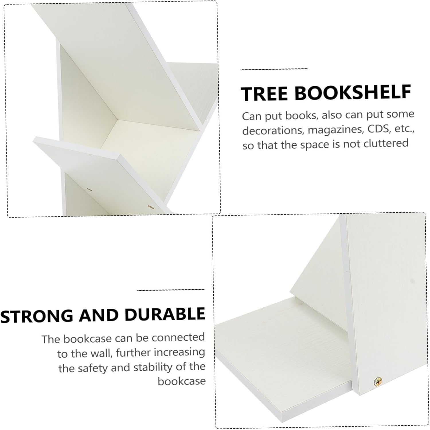 Package Include 1 x book shelf 9 x screws 1 x screwdriver Features -Size: About 40.50X30.80X17.80cm/15.92X12.10X7.00inch Table Book Rack. -Color: White Book Storage Shelf. -Material: Tree Book Shelf. -Simple and stylish appearance, detail design, it is very chic and creative Table Tree Book Rack. -With sturdy structure and creative design, great bookshelf for home, office, school, etc Book Storage Rack. -Designed to keep your desktop clean and orderly, with creative tree shape design Tree Book Holder. -Made of high-class materials, which can withstand the long-term use Table Tree Bookshelf. -It comes with the compact size, which is space-saving, not easy to fade and damage Small Bookshelf.Goods InformationSmall Bookshelf Suitable for the use , school, office and more.Table Tree Book provides solutions for many storage needs, such as books, stationery, sundries, potted and other small items.Tree Book Holder This is a desktop book storage rack.Desktop Bookshelf With creative tree shape design and sturdy structure, not easy to damage
