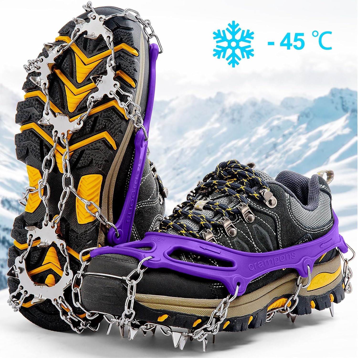 | Item Type Name | Crampons Ice Cleats Traction Snow Grips for Boots Shoes Women Men Kids Anti Slip 19 Stainless Steel Spikes Safe Protect for Hiking Fishing Walking Climbing Mountaineering |
