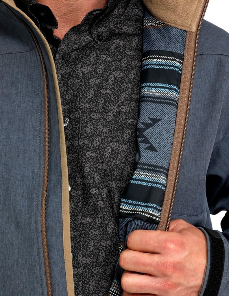 Cinch Men's Blue Sleeve Logo Bonded Jacket Textured Polyester and Spandex Printed Lining Velcro Cuffs Logo Embroidery DWR Finish MWJ1567015 Built for performance and Western style, the Cinch Blue Sleeve Logo Bonded Jacket combines function with a bold look. Crafted from a textured polyester and spandex blend, this jacket offers lightweight flexibility and weather-resistant protection with a DWR (Durable Water Repellent) finish. The interior features a soft printed lining for added comfort, while Velcro-adjustable cuffs help seal out the cold. Finished with signature Cinch logo embroidery along the sleeve, this jacket brings classic branding to your outerwear lineup.
