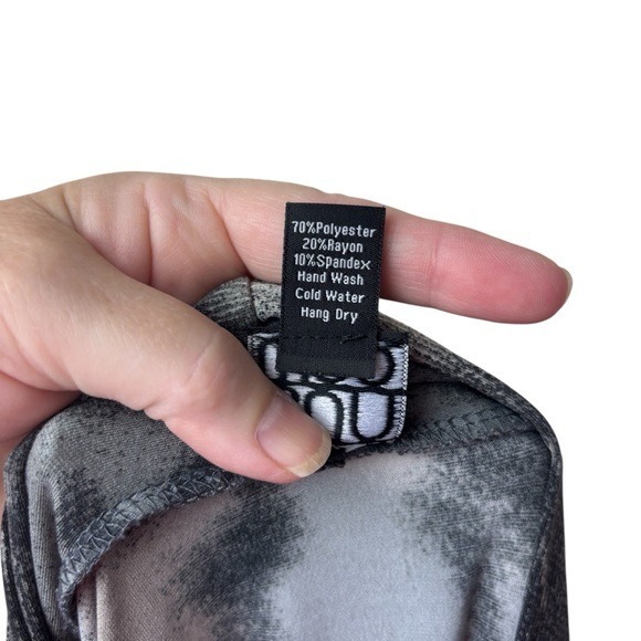 Fabric content: 70% polyester, 20% rayon and 10% spandex.